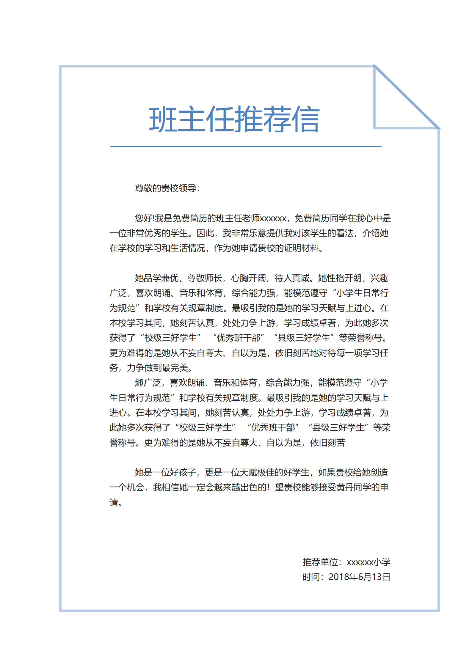 当前位置:51简历模板 - 小升初幼升小毕业升学模板