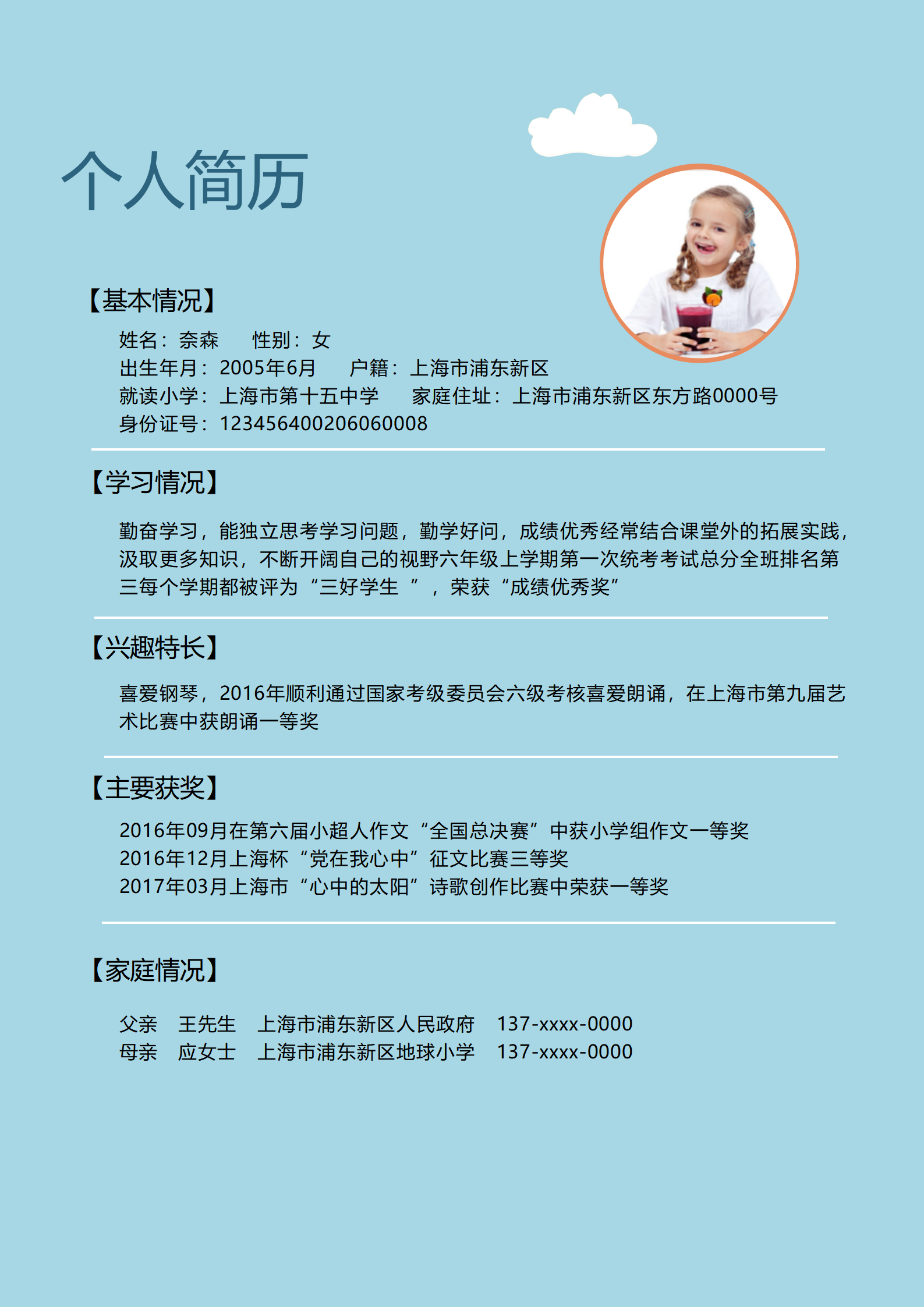 2025-04-20 分类:小升初简历 编号:XSC-00111 浏览量:105