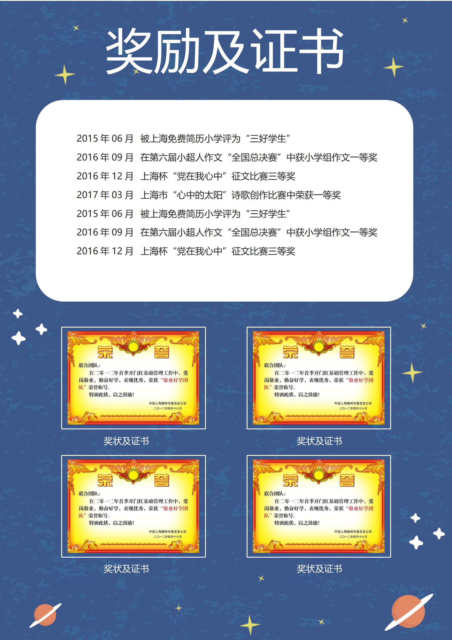 类型:小升初简历