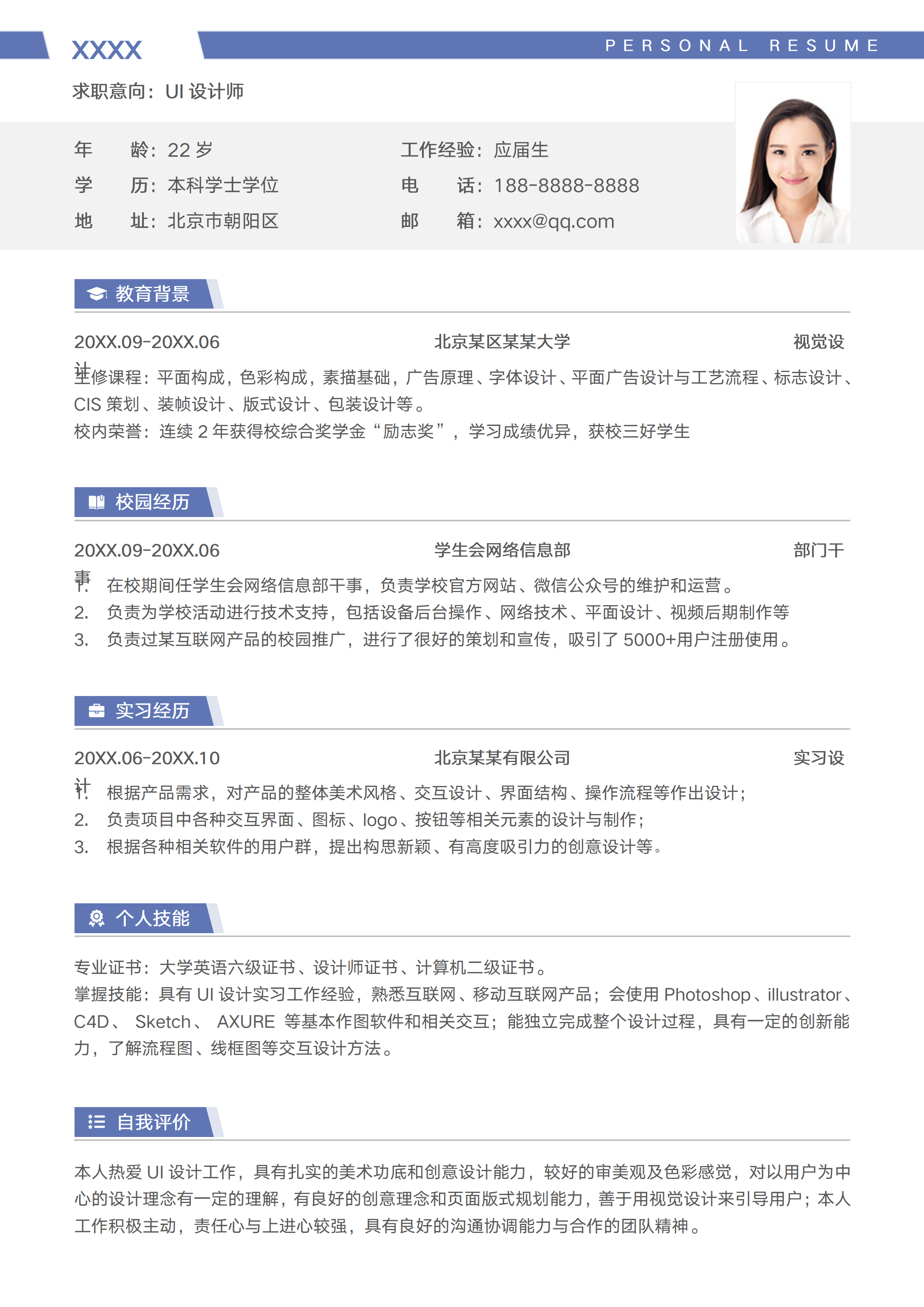 简约风ui设计师应届生个人简历
