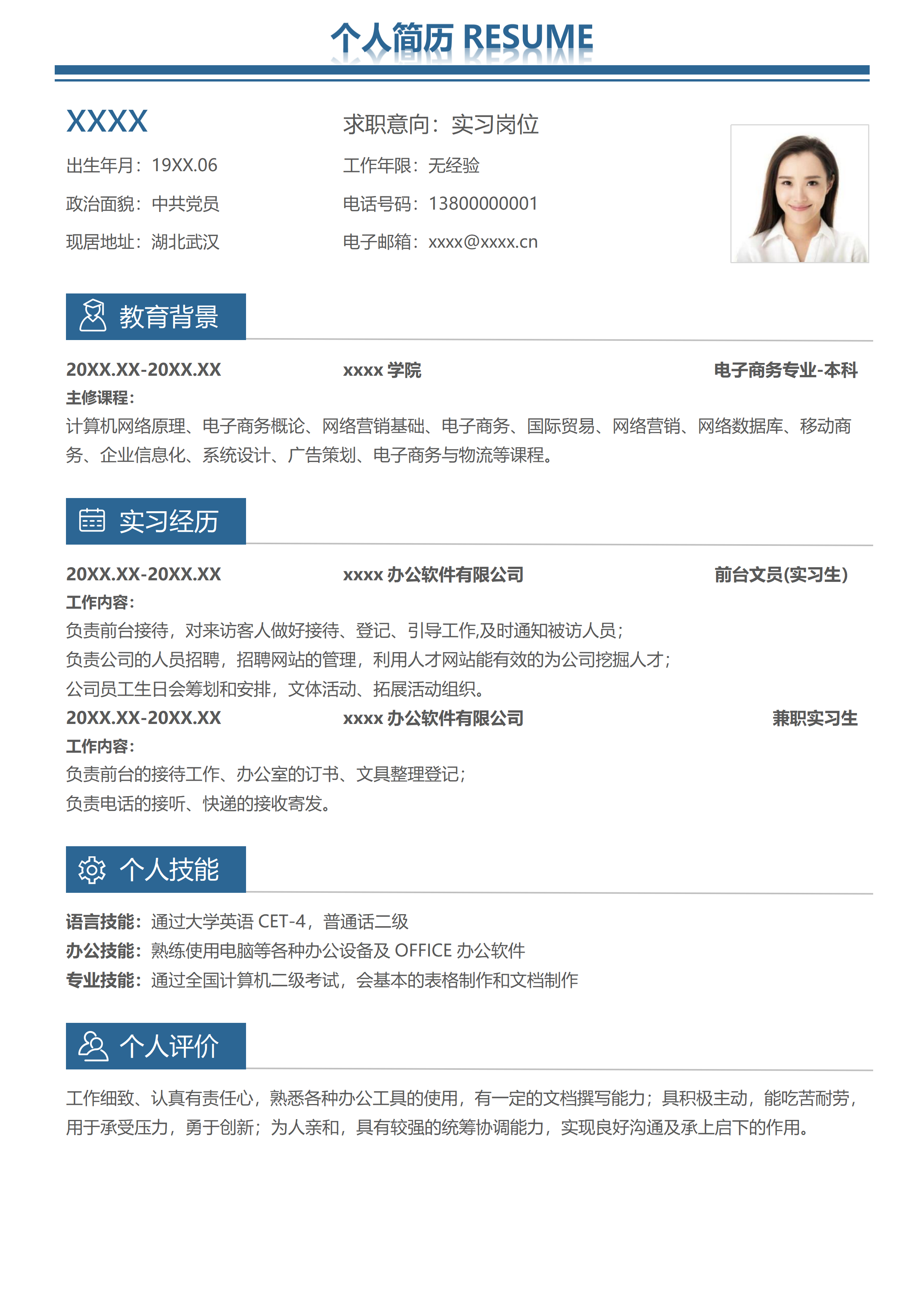 前台文员简洁应届生简历
