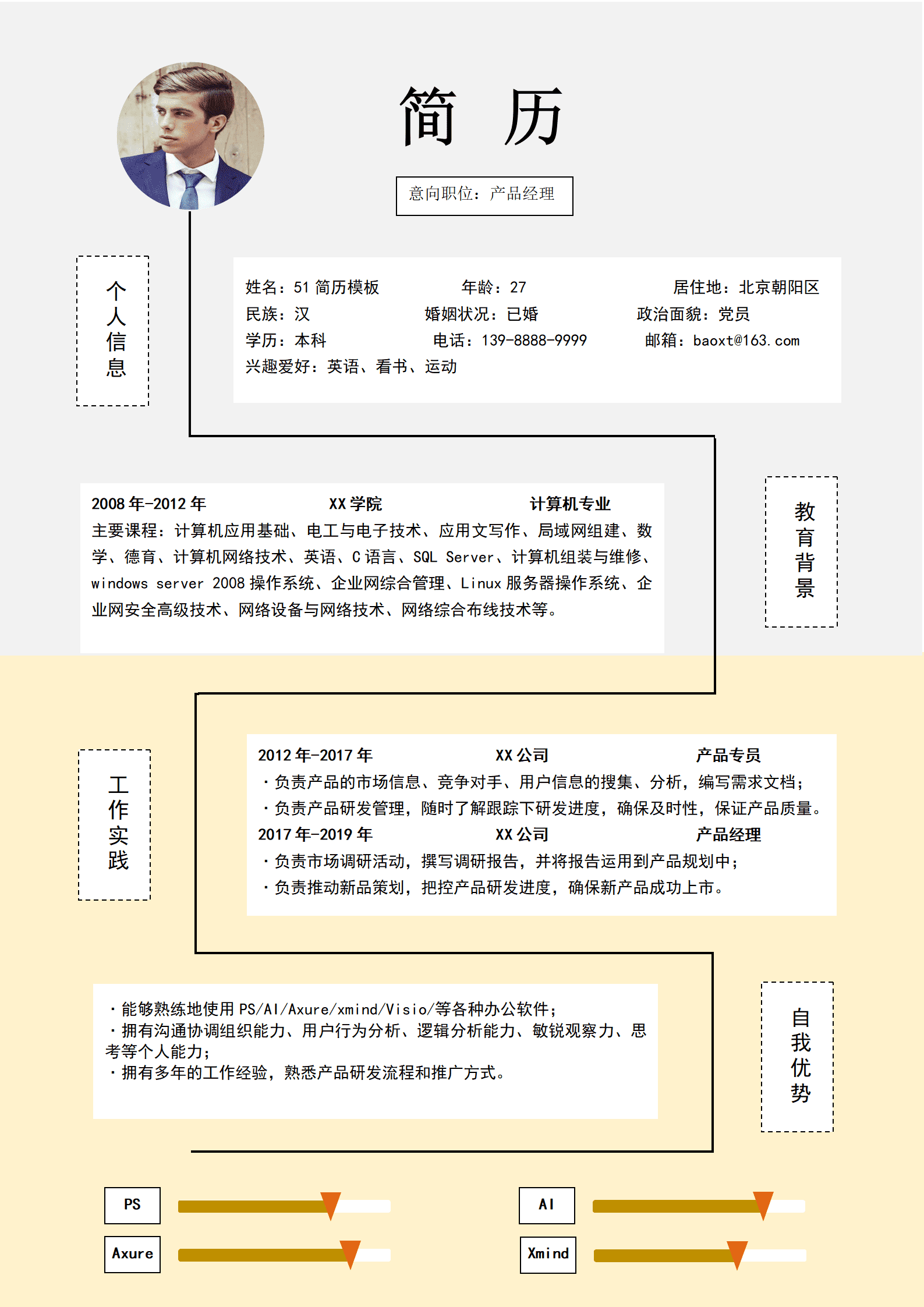 互联网IT产品经理免费简历模板