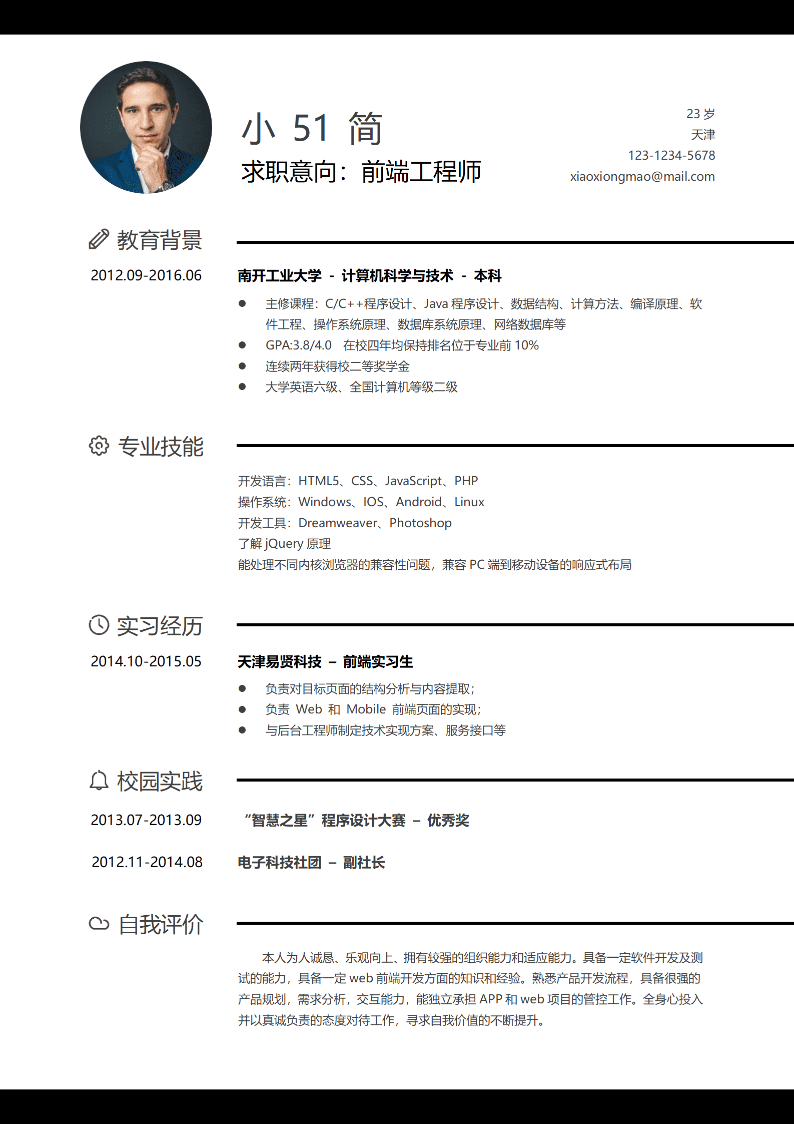 计算机科学与技术专业前端工程师简历模板