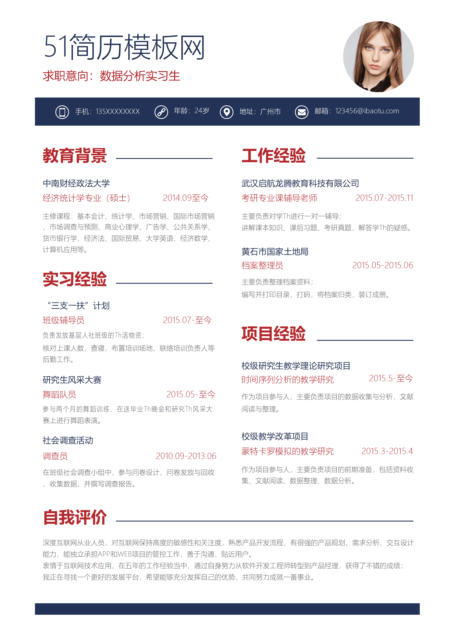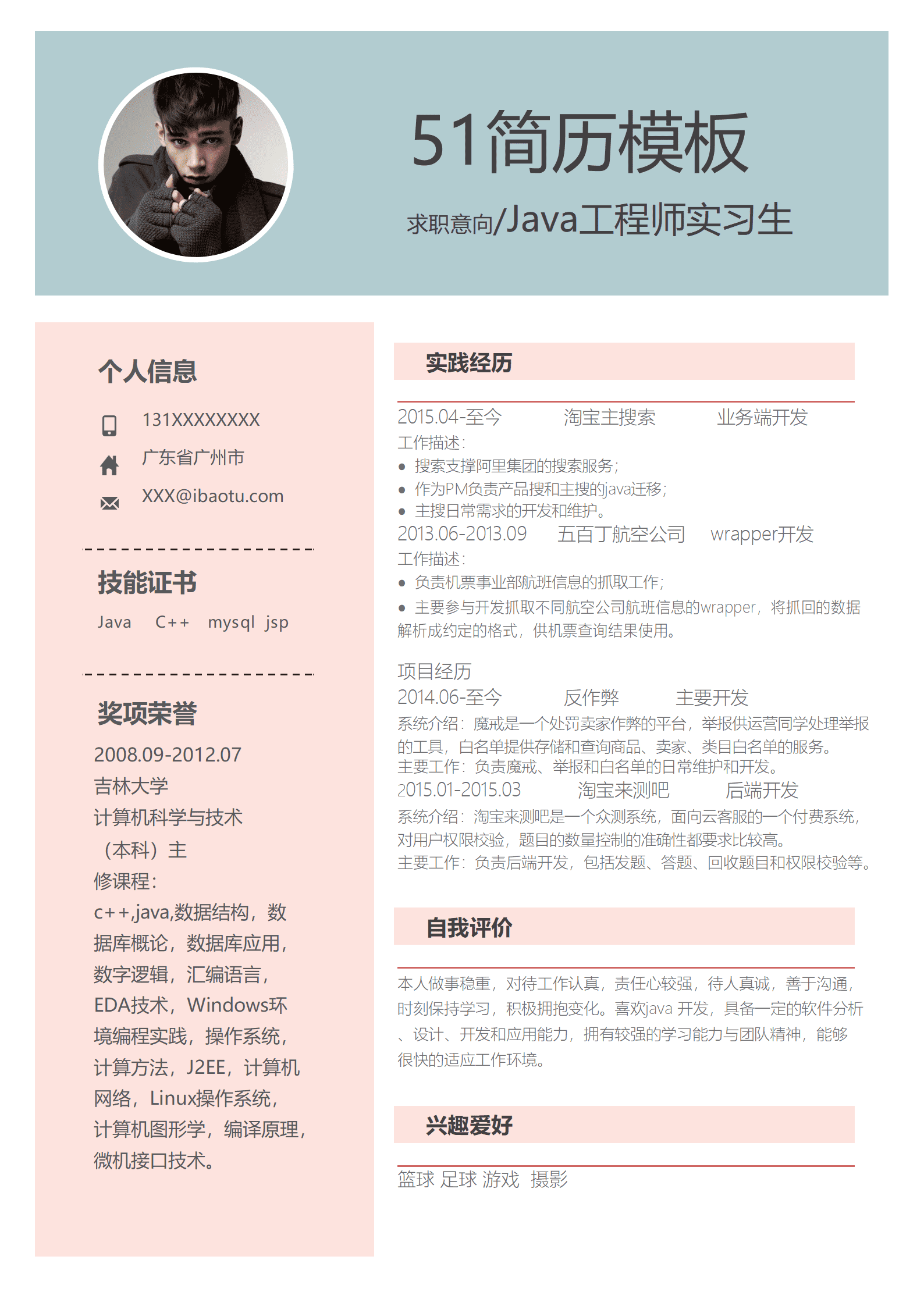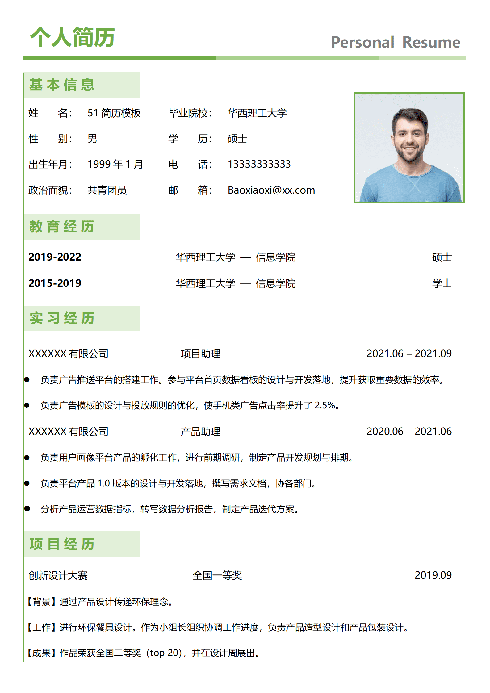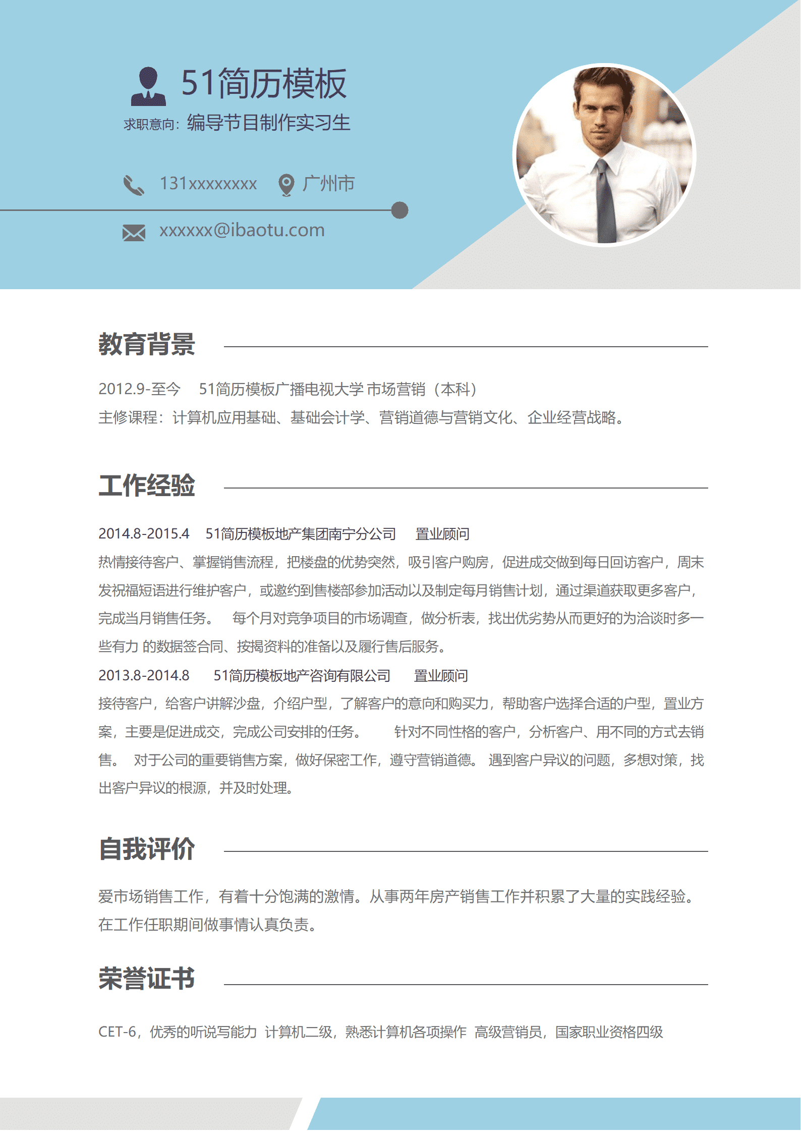 应届生简历实习生简历新媒体运营个人求职简历word简历模板