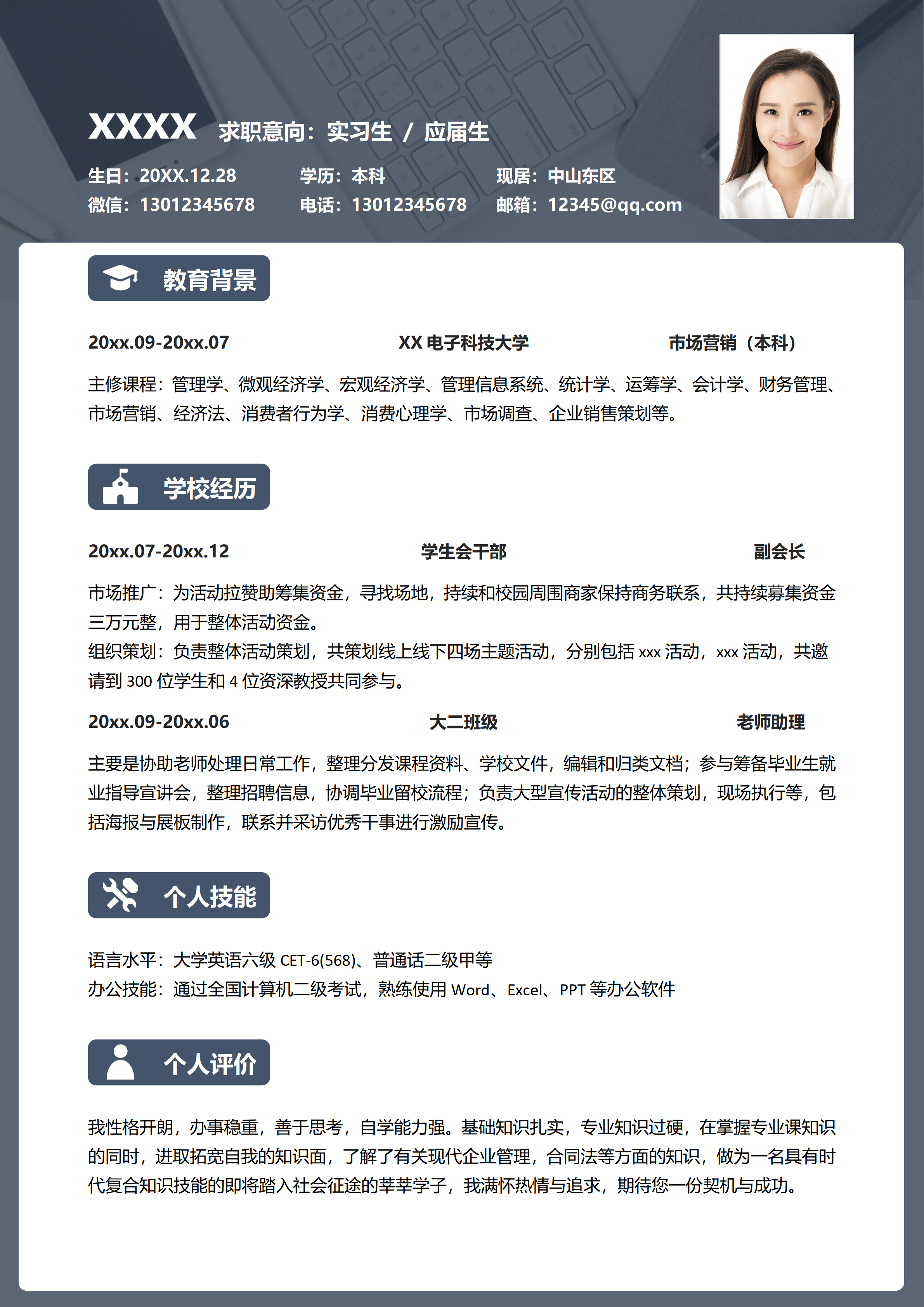 蓝色调实习生求职简历