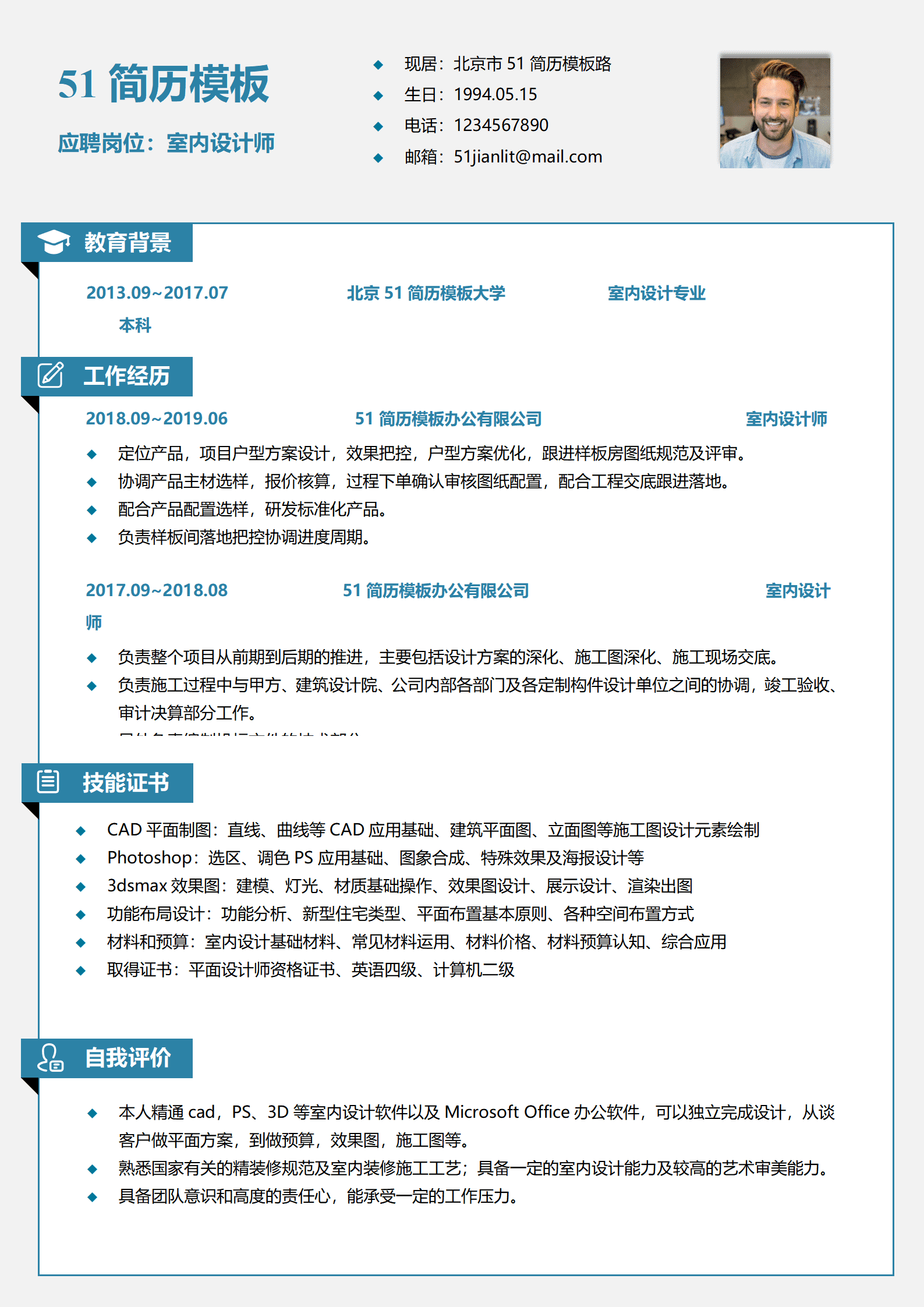 室内设计艺术设计类岗位求职简历模板