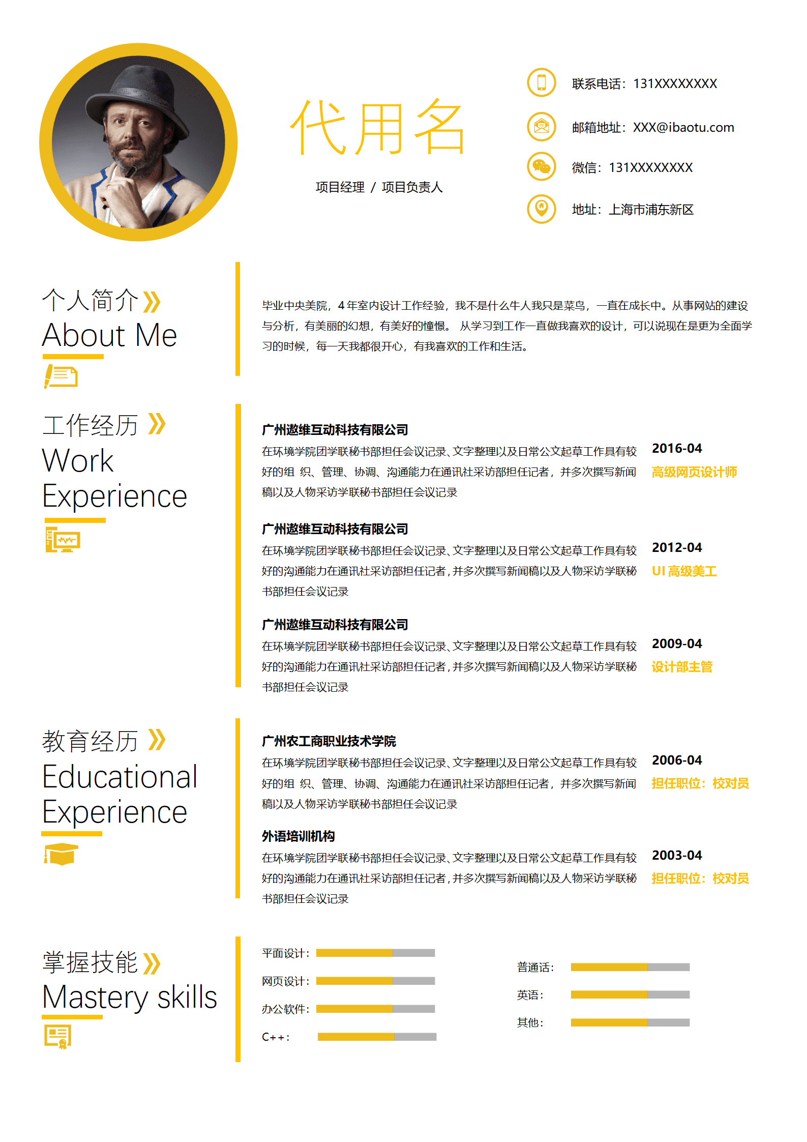 高级平面设计师岗位求职简历模板