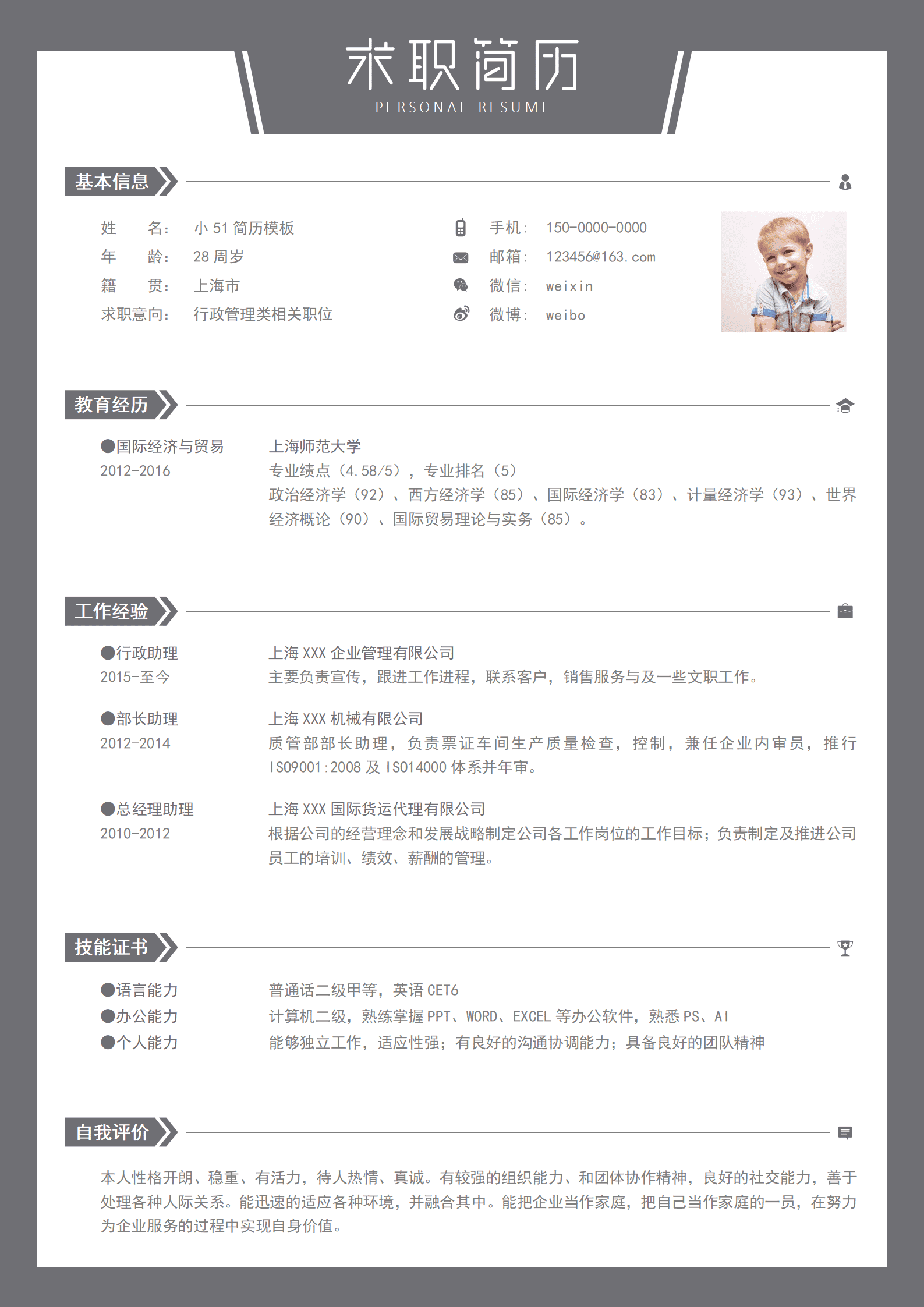 小升初简历
