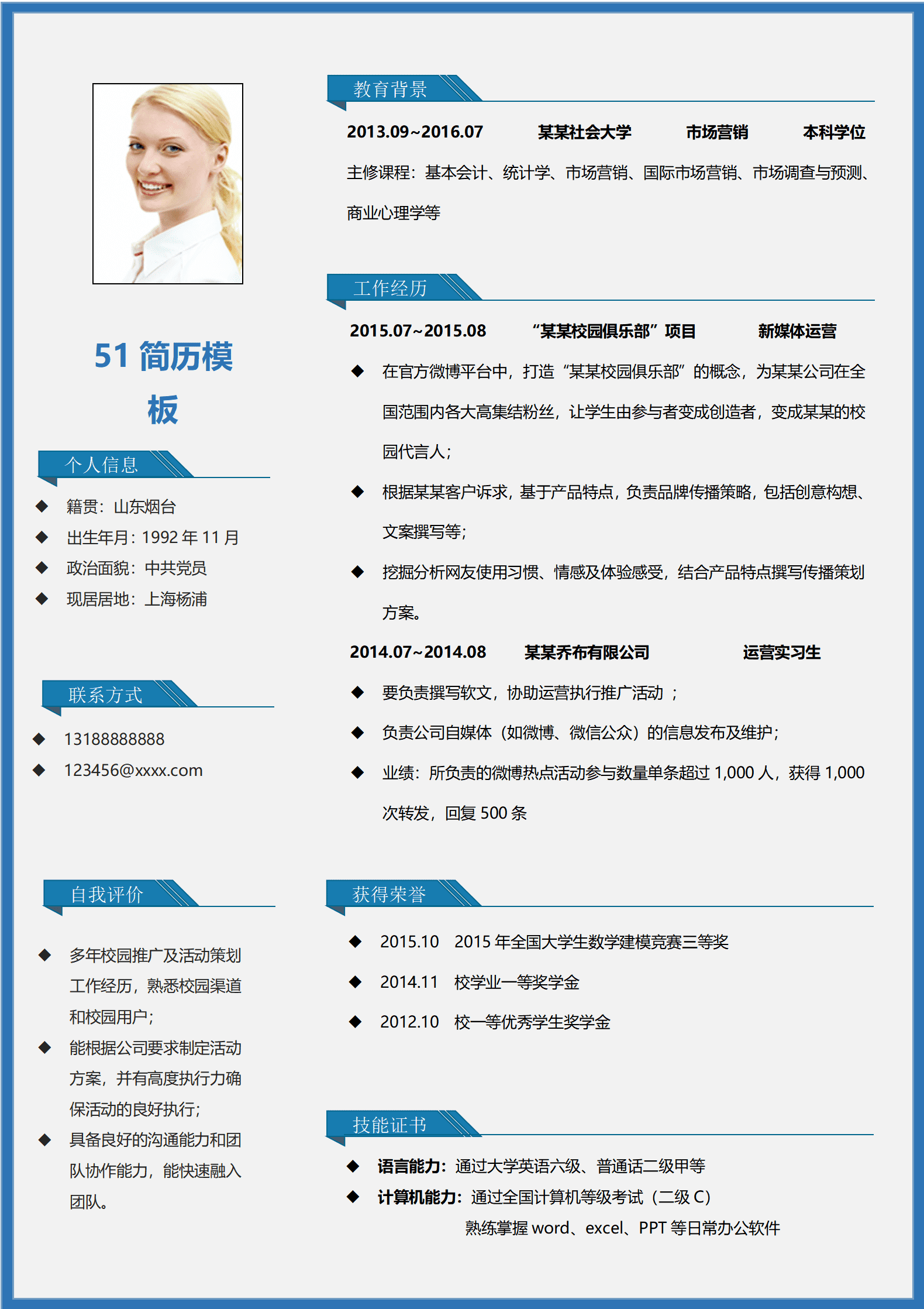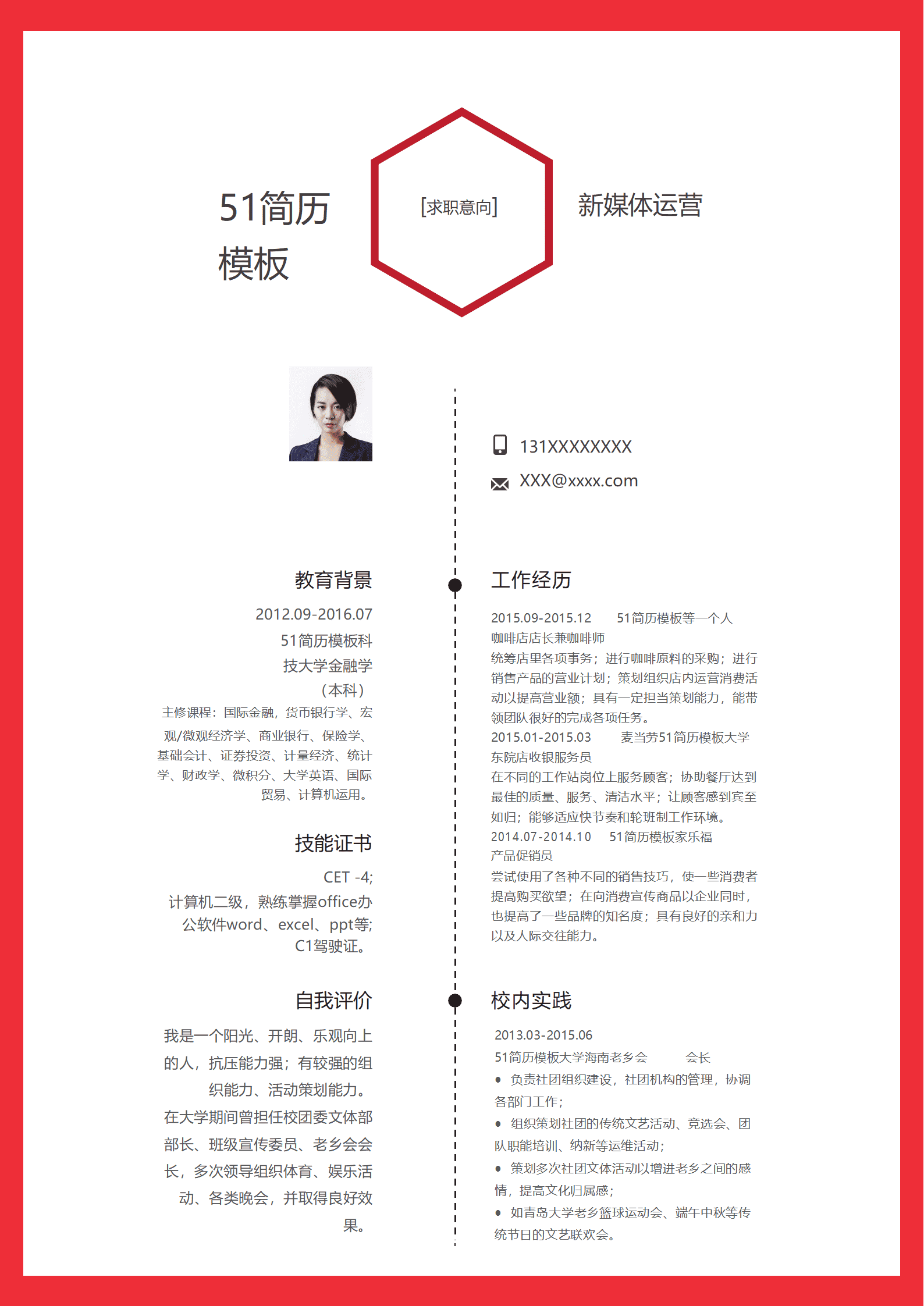 应届生简历实习生简历新媒体运营个人求职简历word简历模板