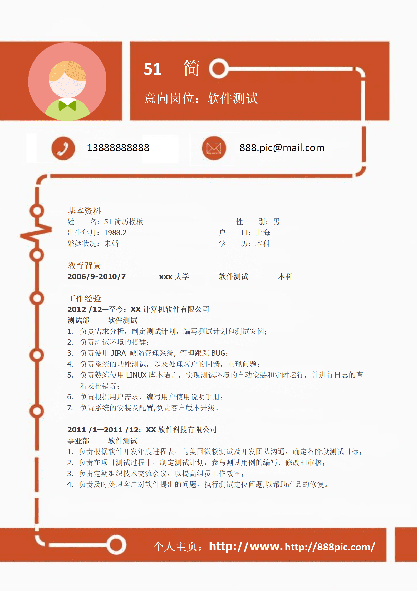 绿色创意牛皮纸软件测试工程师求职简历word简历模板