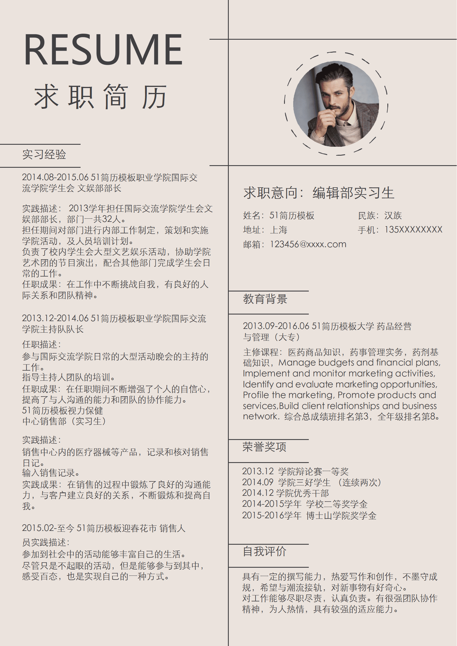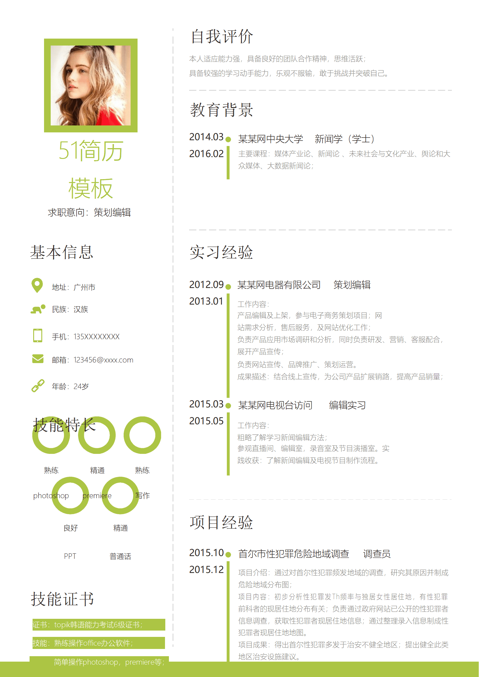 网络编辑岗位简历---该模板适合经验较少的应届生