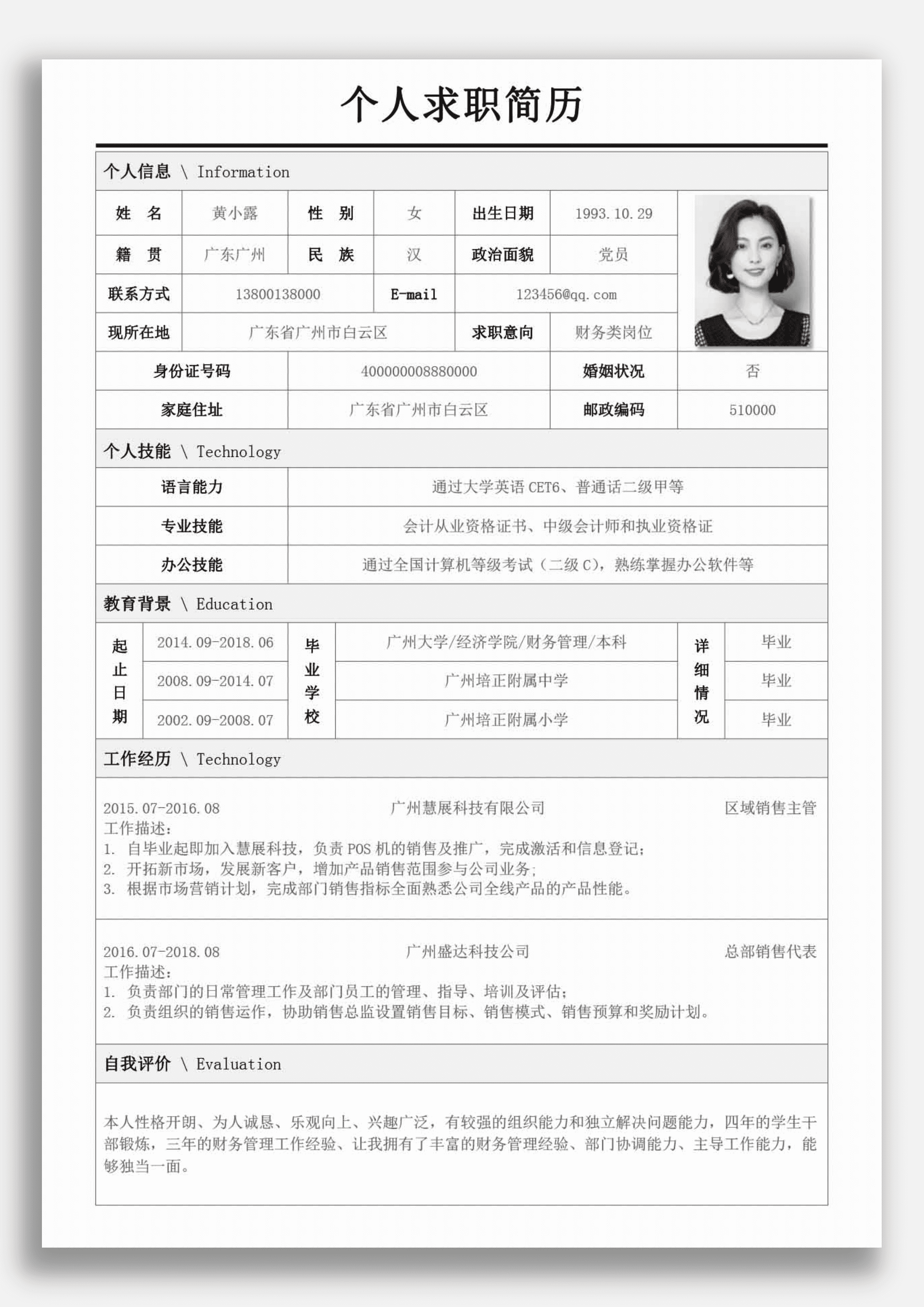个人财务求职简历Word模板
