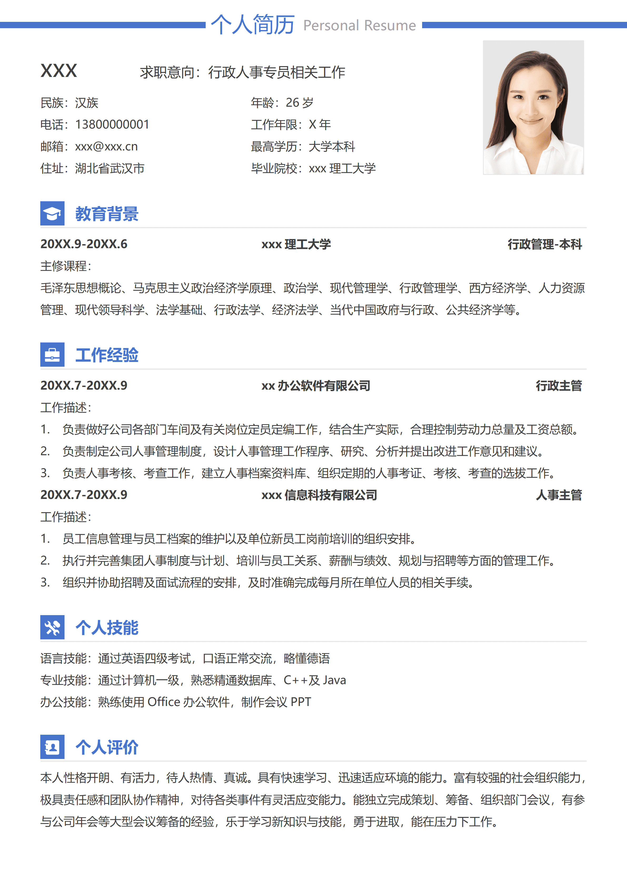 行政管理专业新媒体运营简历模板