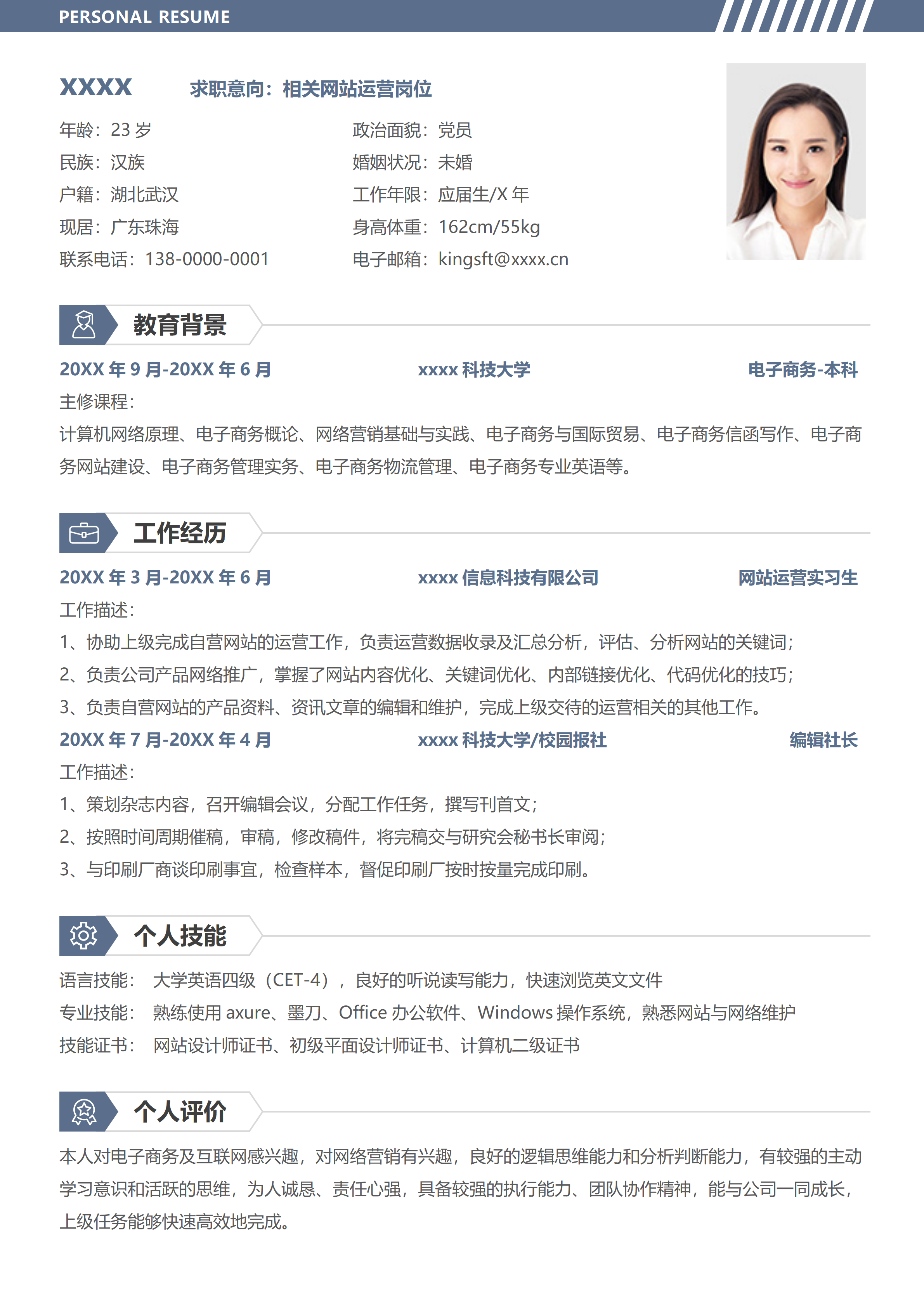电子商务专业运营专员简历模板