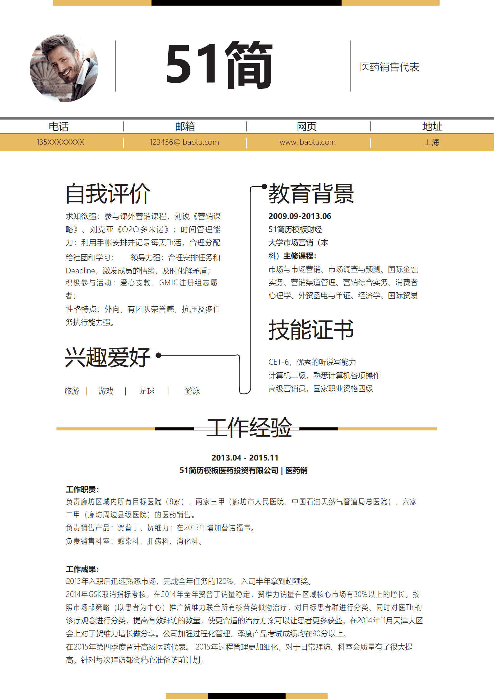 医药销售代表word简历免费模板