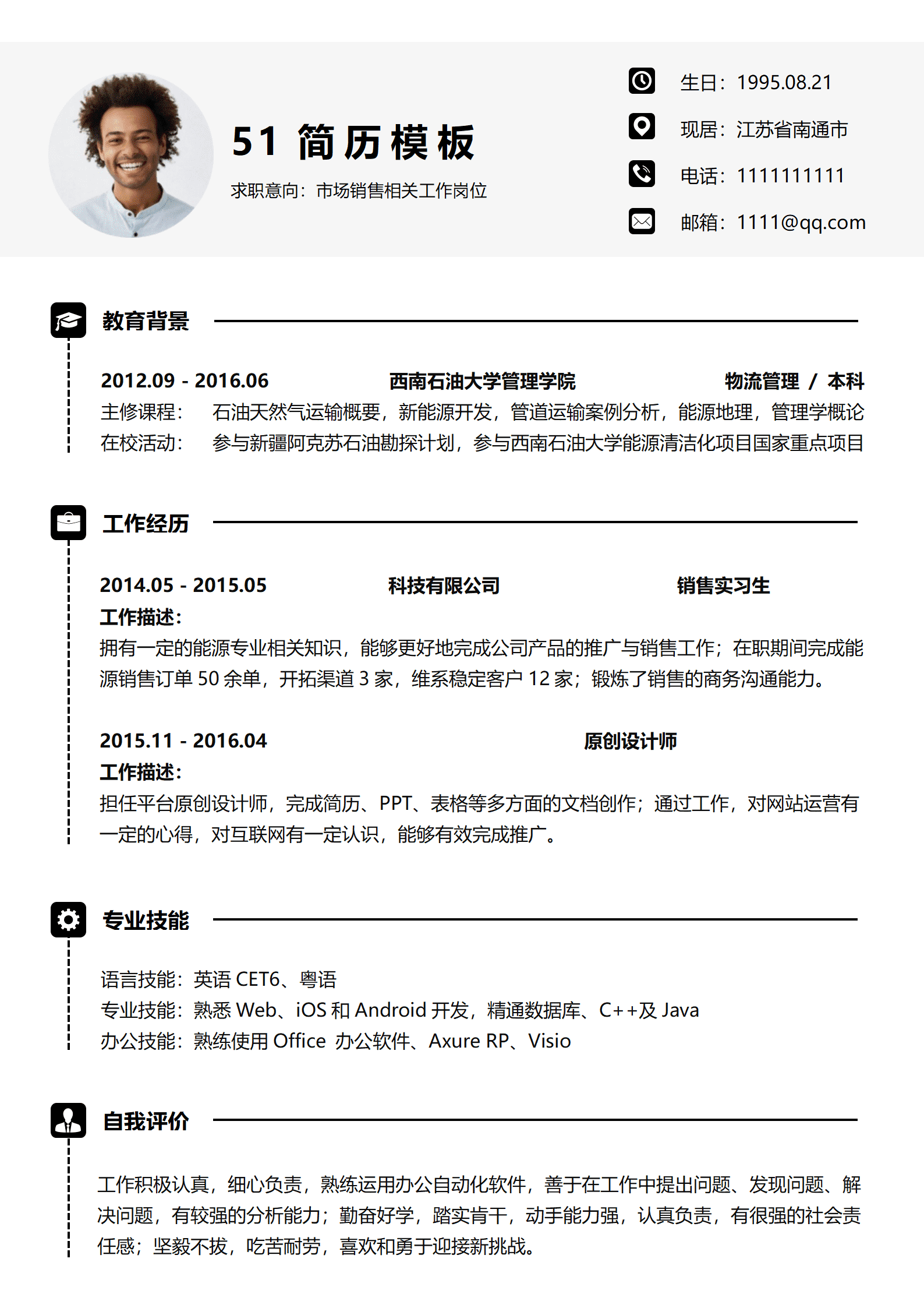 销售岗位简历模板