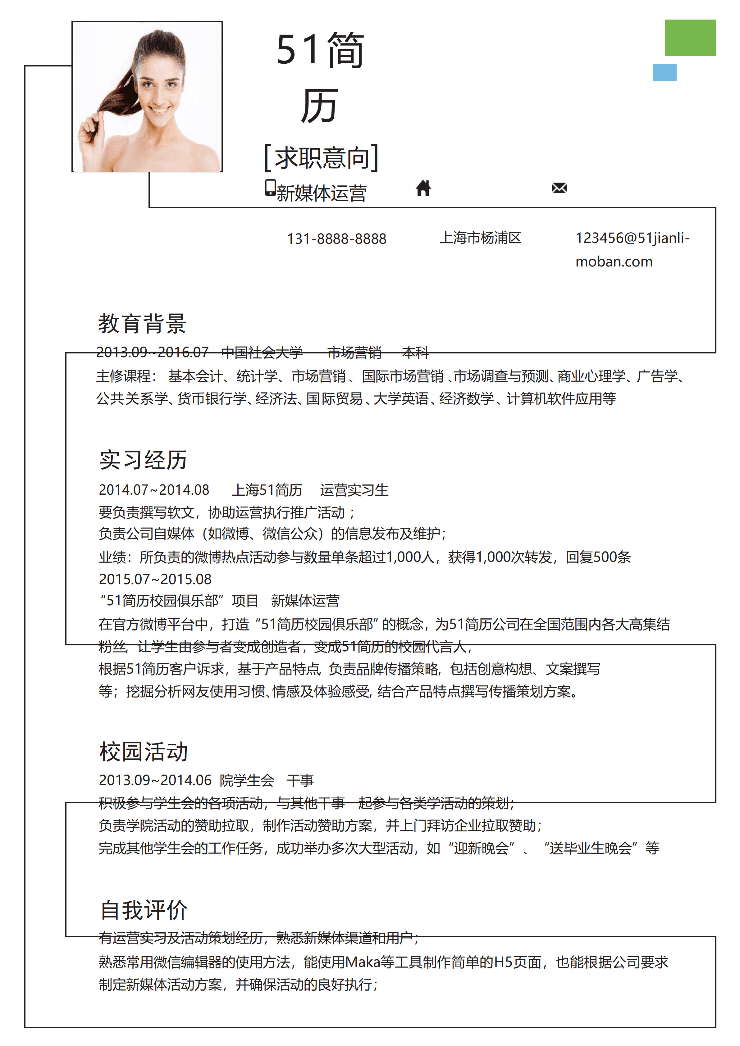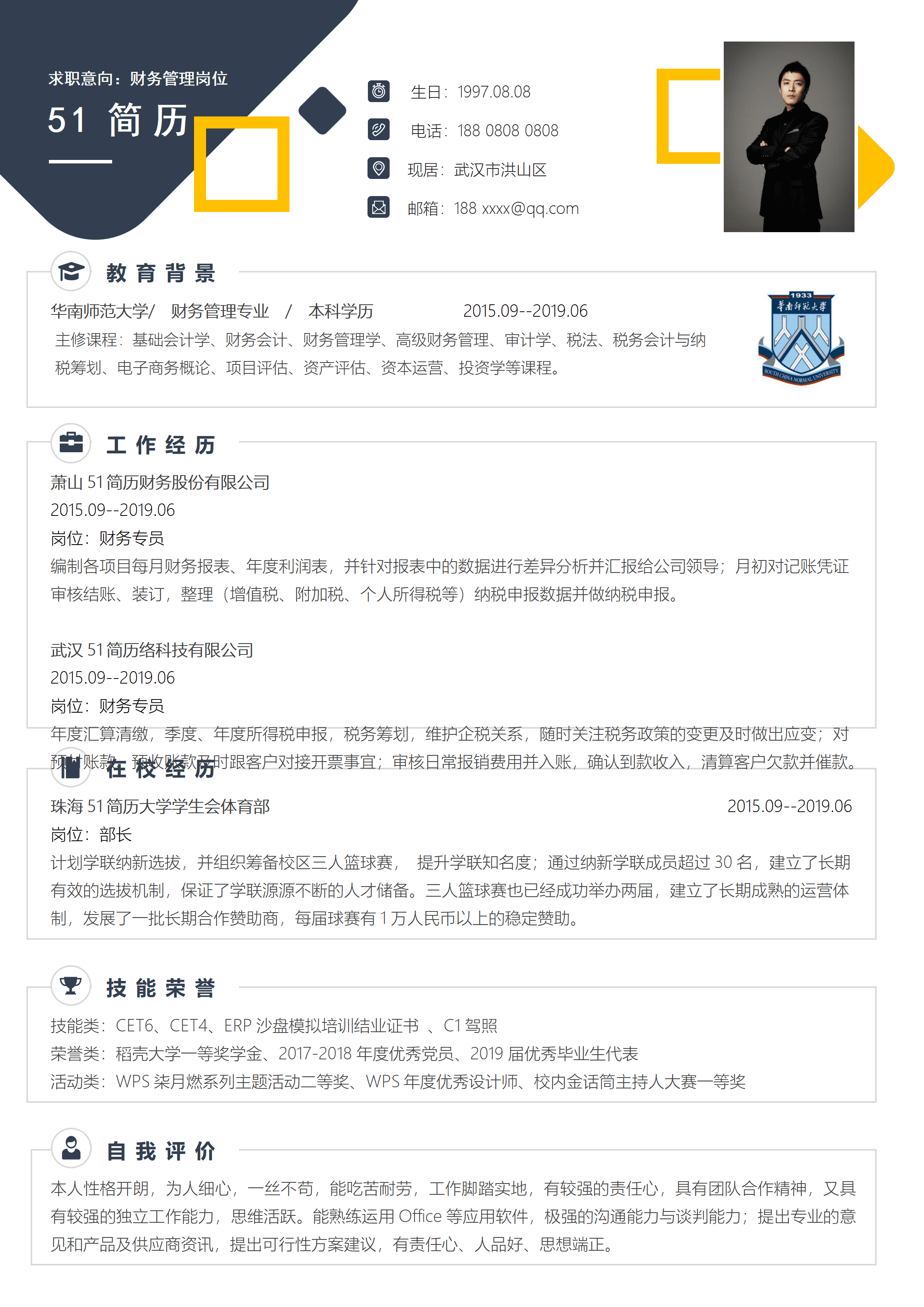 当前位置:51简历模板 - 工商管理相关专业应届生求职简历模板