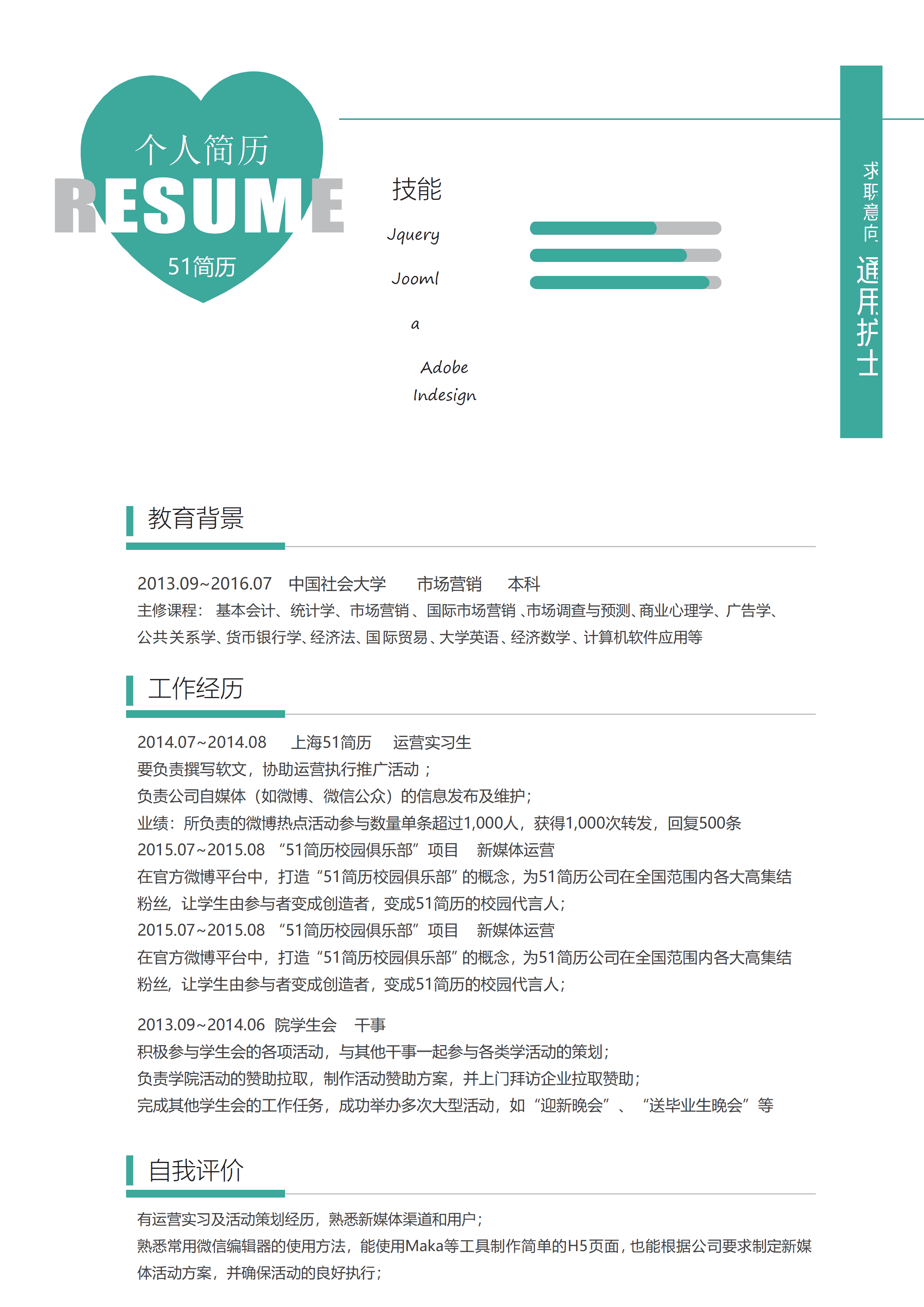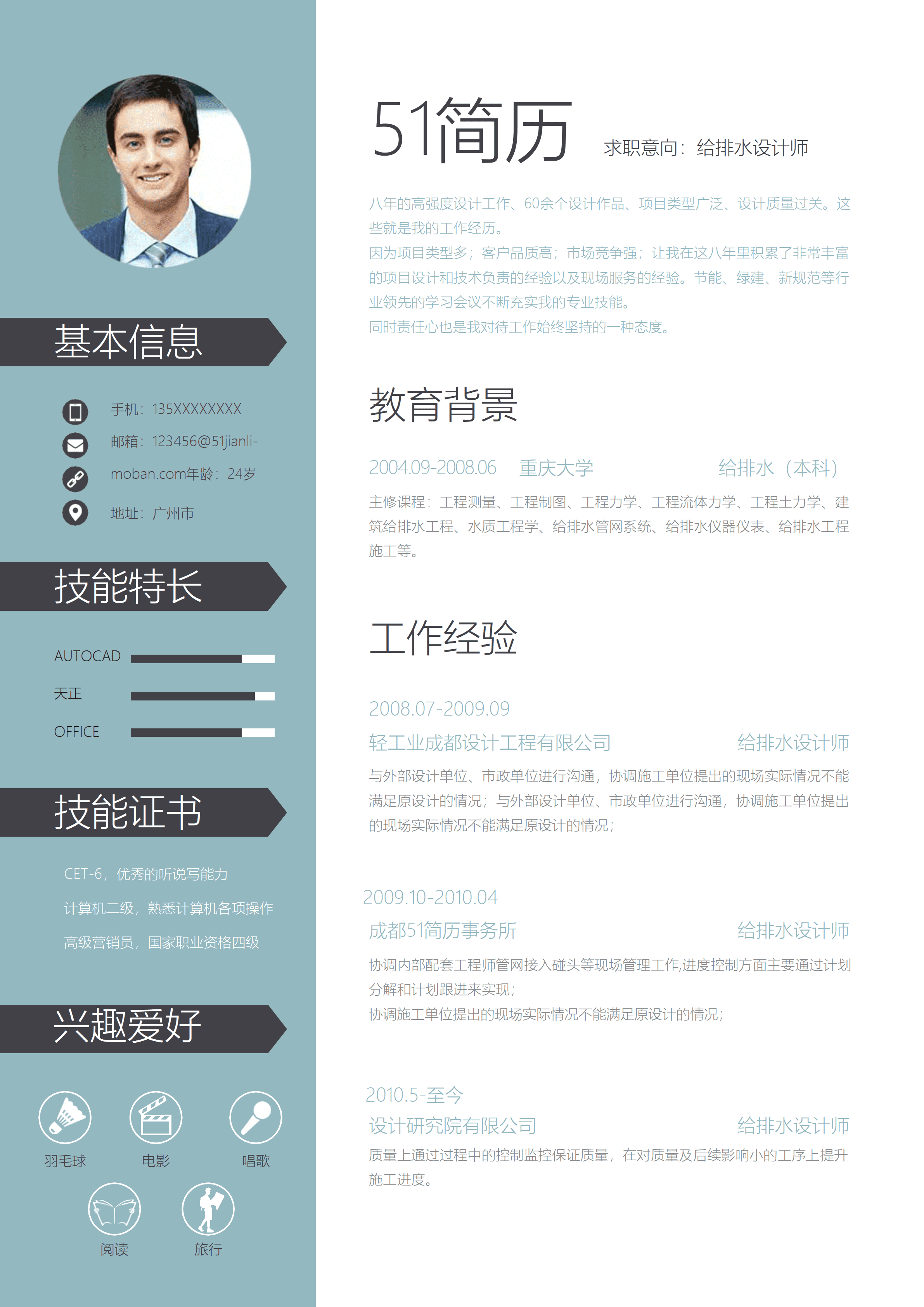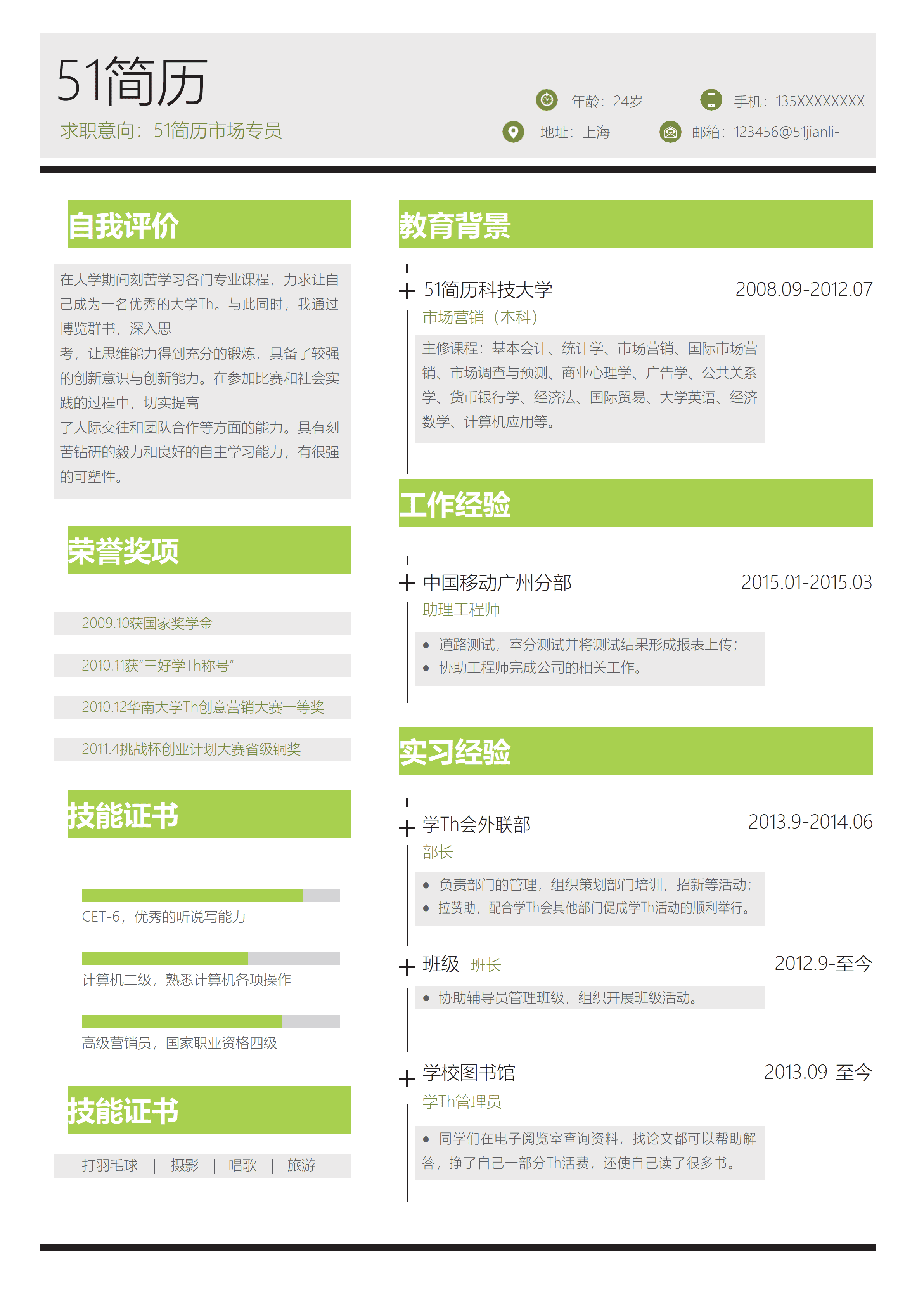 当前位置:51简历模板 - 清新淡雅简洁个人简历模板