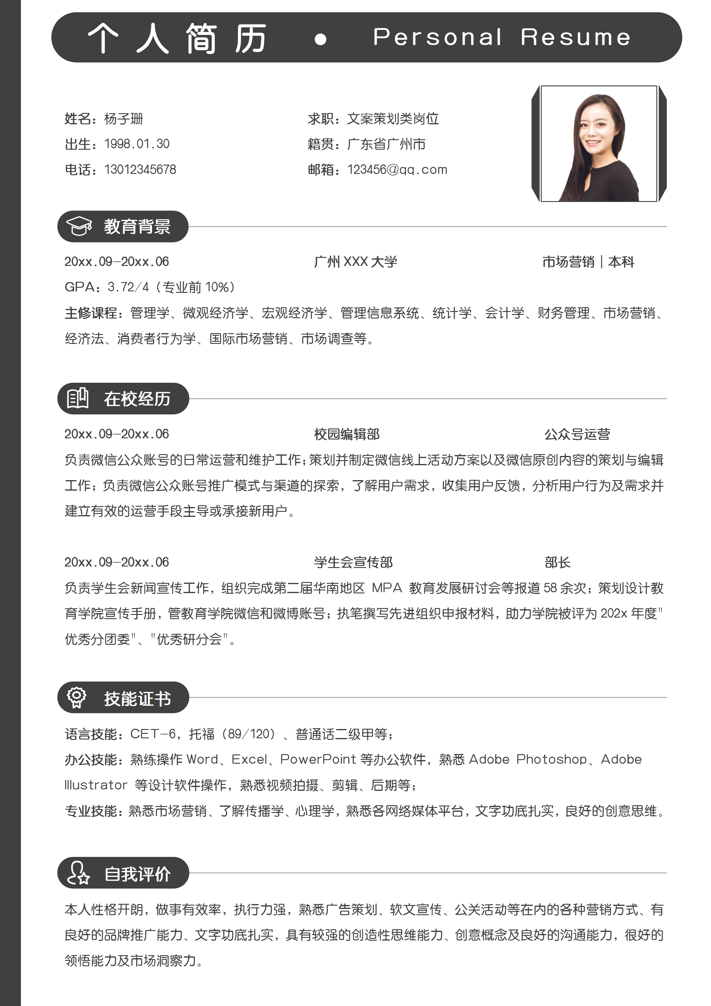 如何在春招中脱颖而出?这里有你需要的答案。以下是小编整理的一份春招市场营销个人简历,模板风格简约大气,欢迎参考使用。
