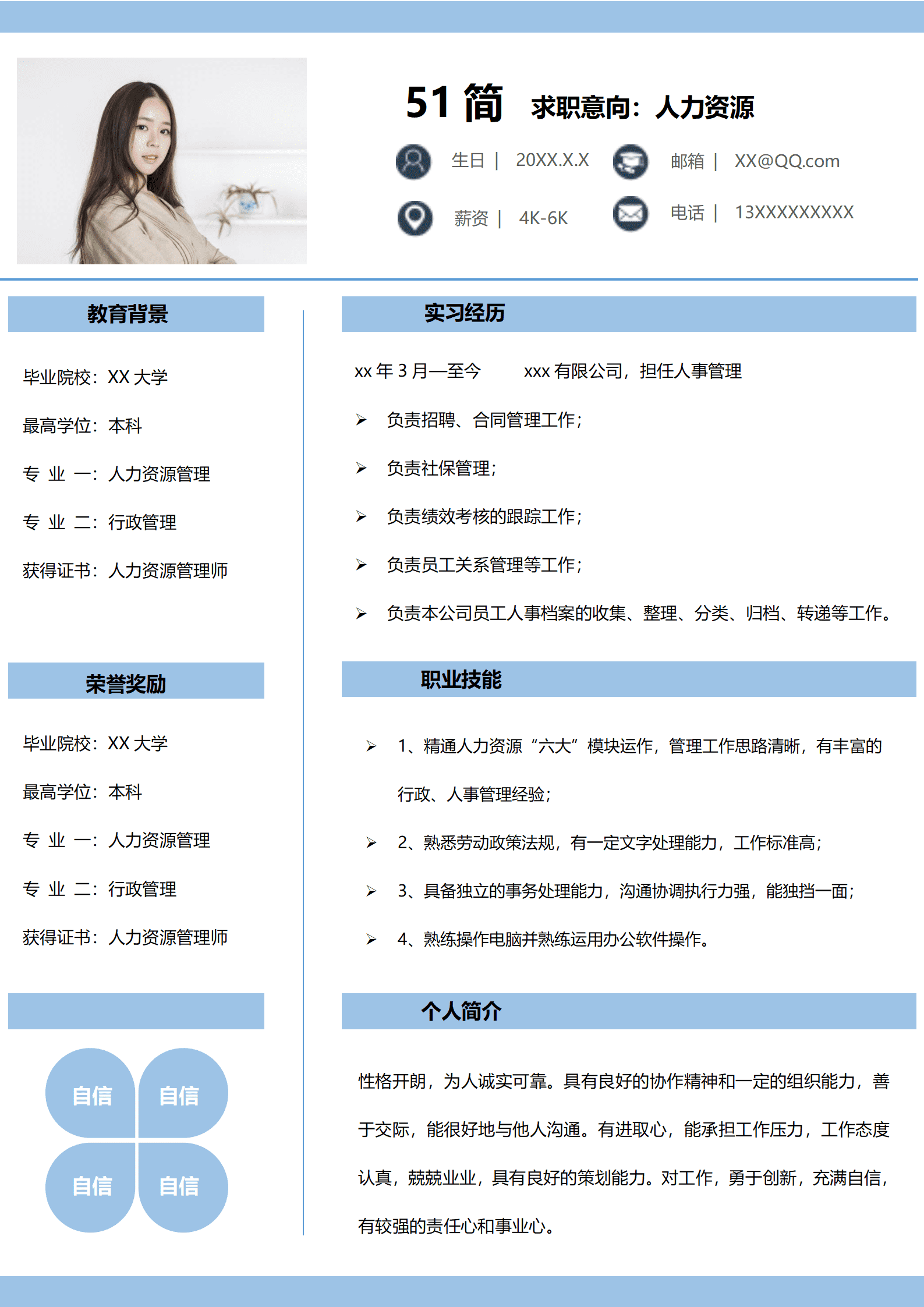 浅蓝色调实习生求职简历
