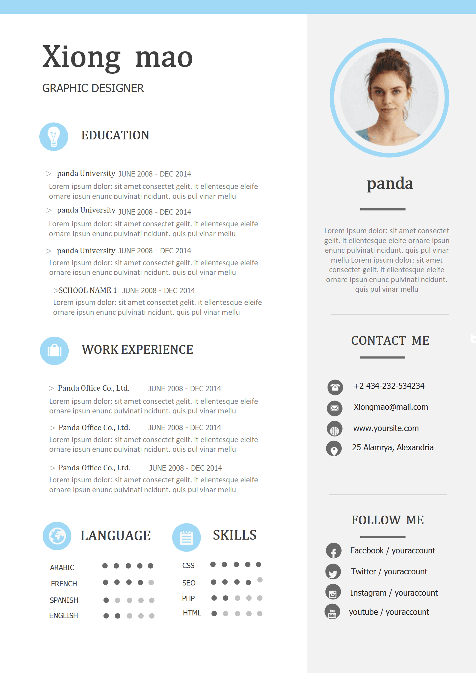 双栏创意简历模板免费使用