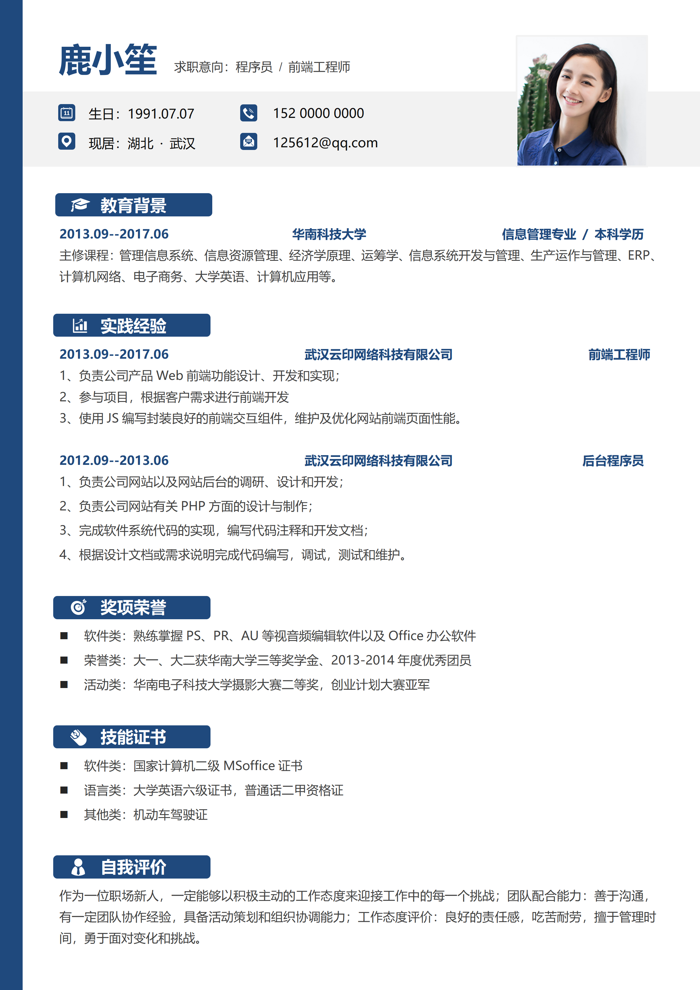 免费浅蓝渐变简约产品经理简历Word模板 (2)