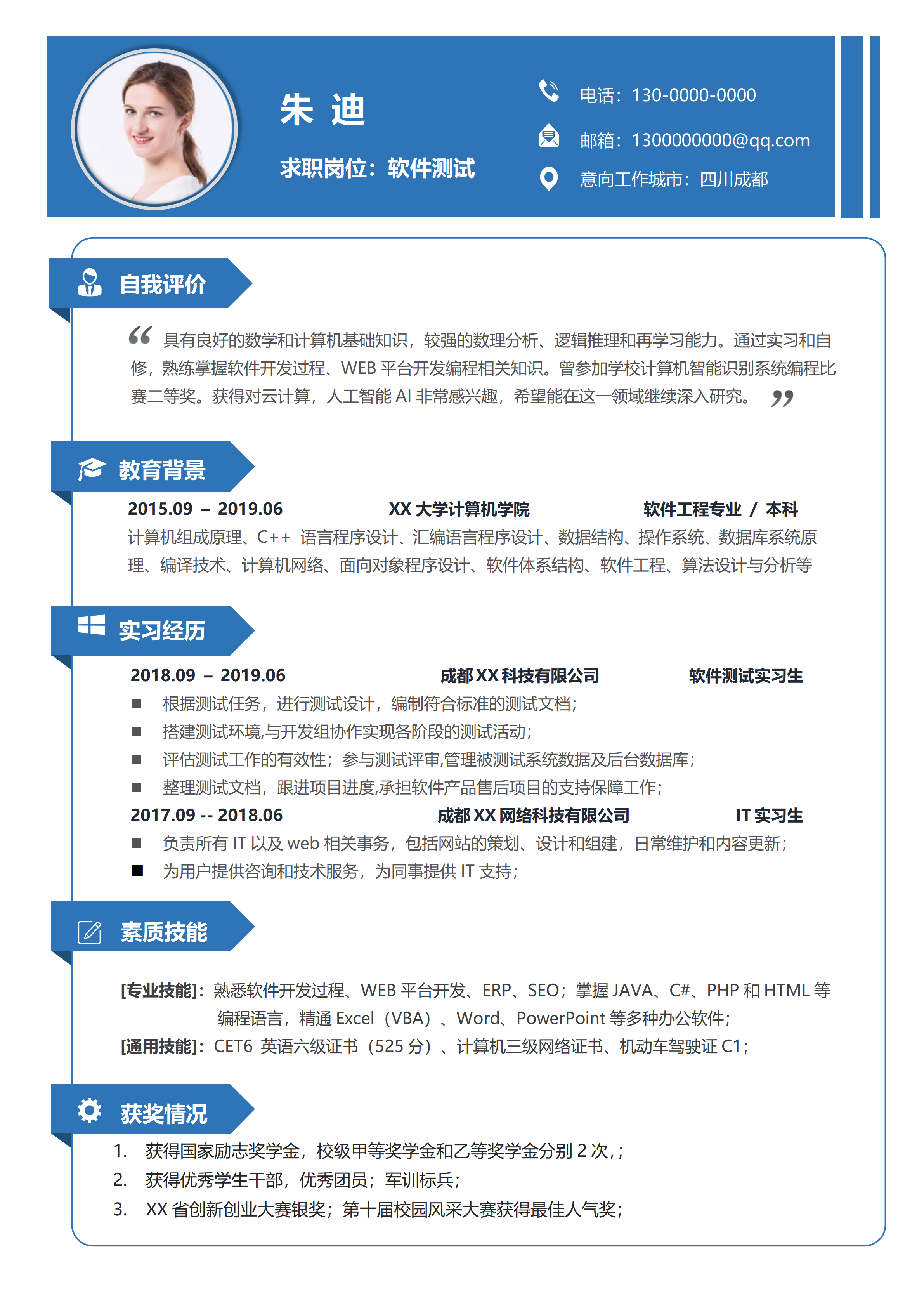 软件开发测试类岗位求职简历模板