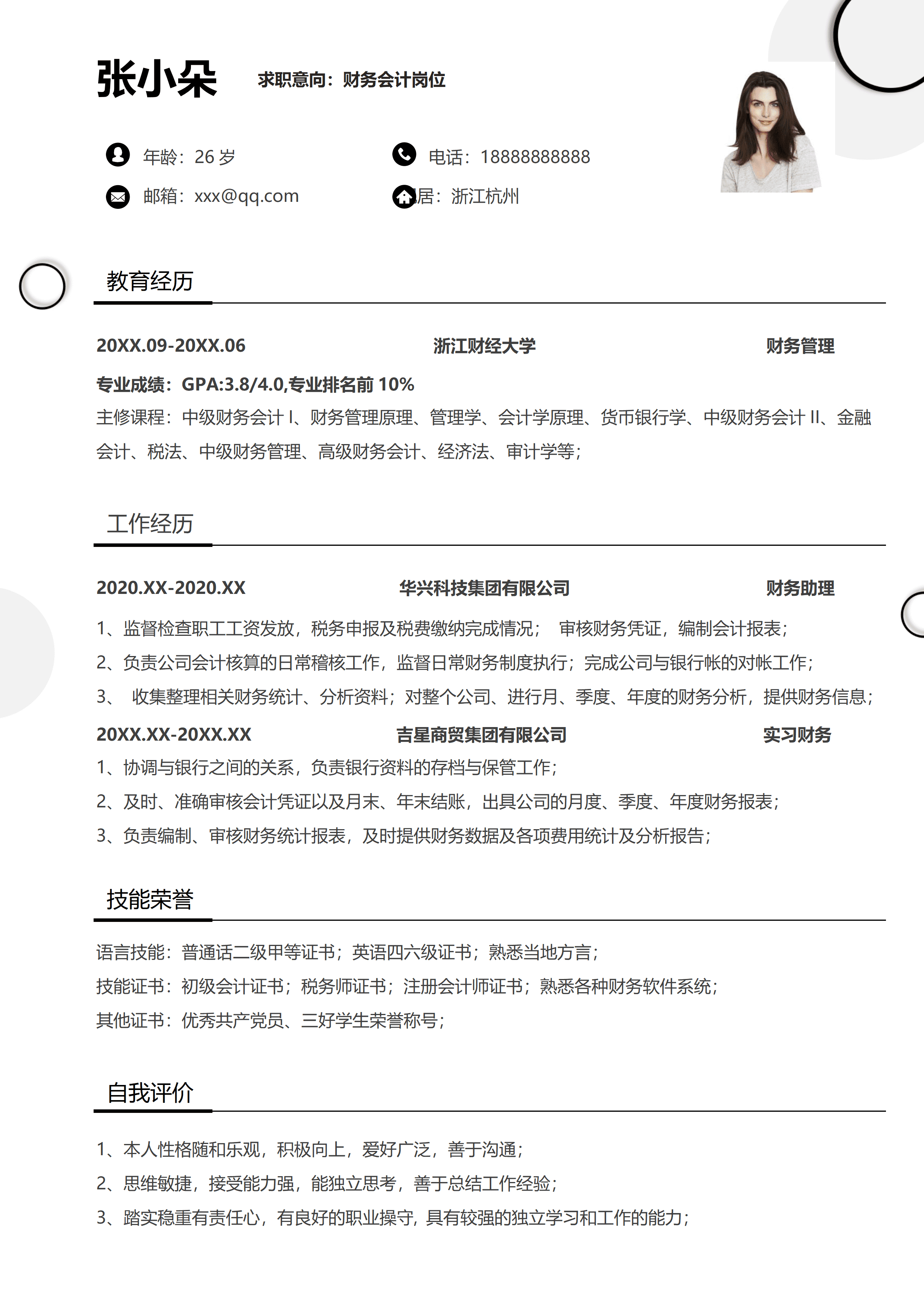 文化艺术类相关专业应届毕业生个人求职简历模板