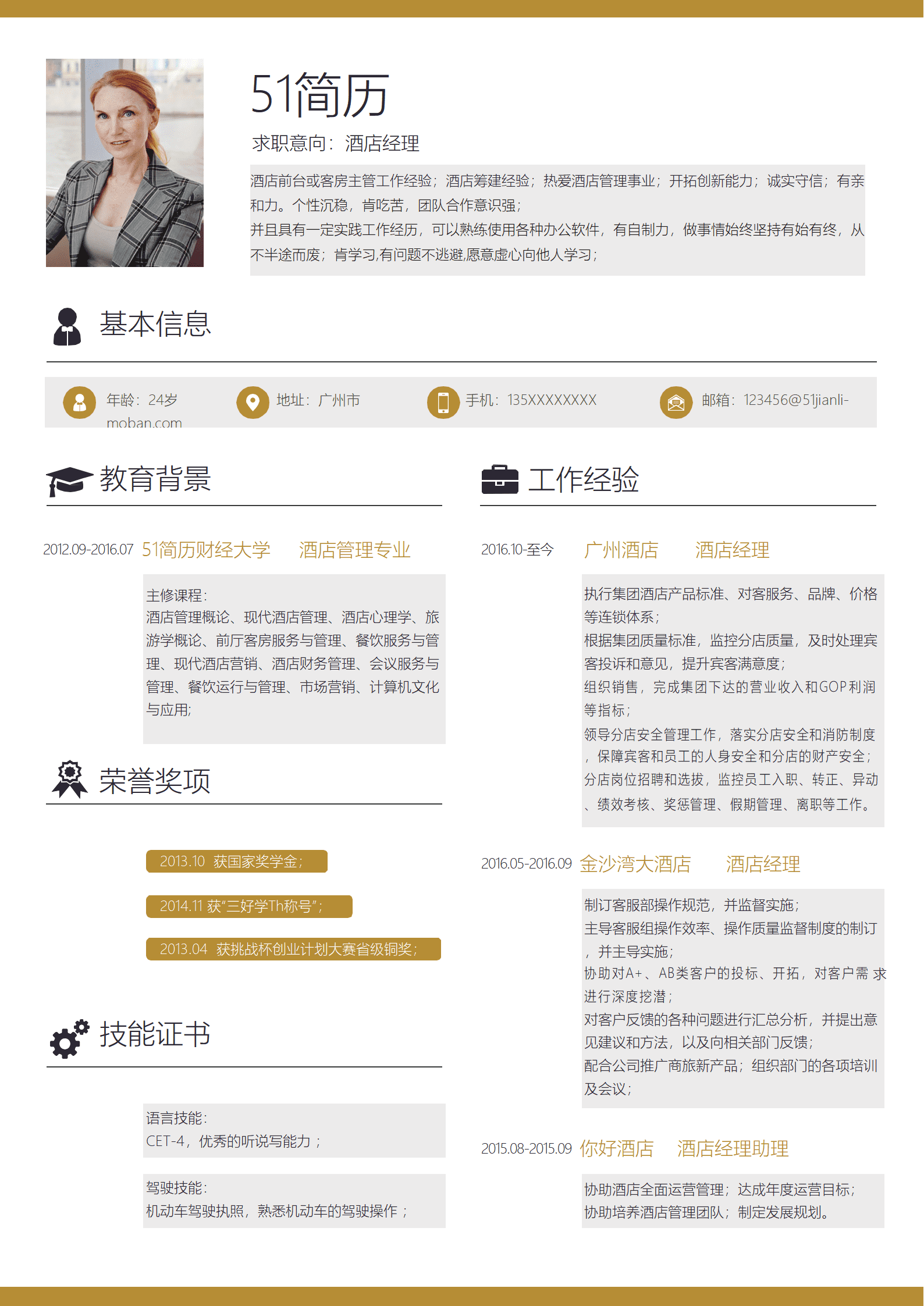 时尚简约酒店经理简历通用Word模板