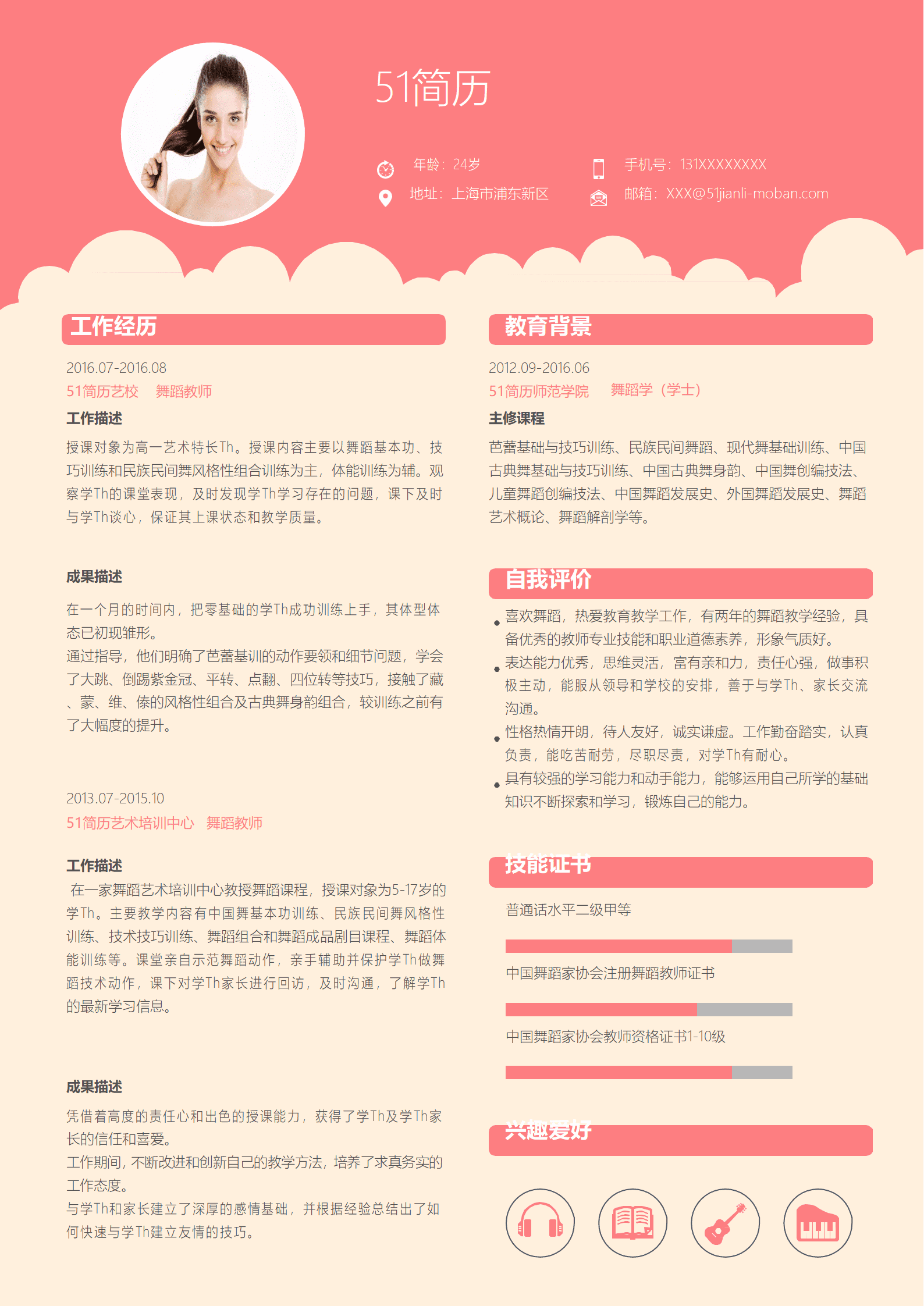 清新时尚舞蹈老师求职简历Word模板