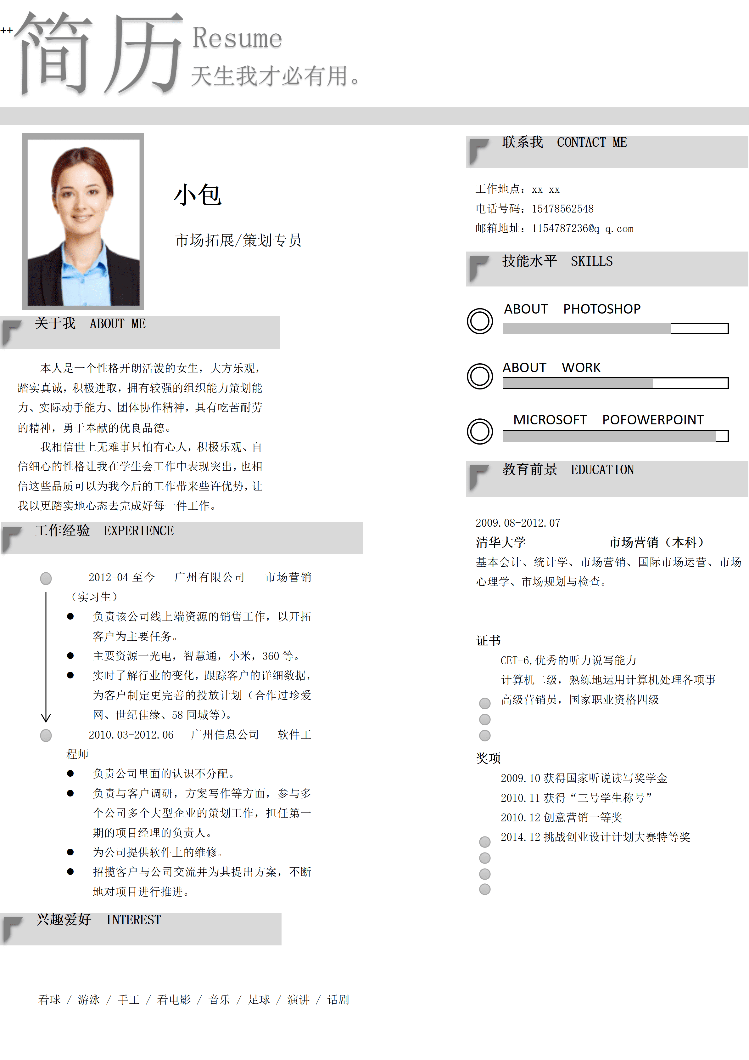 销售业务市场拓展类岗位求职简历模板