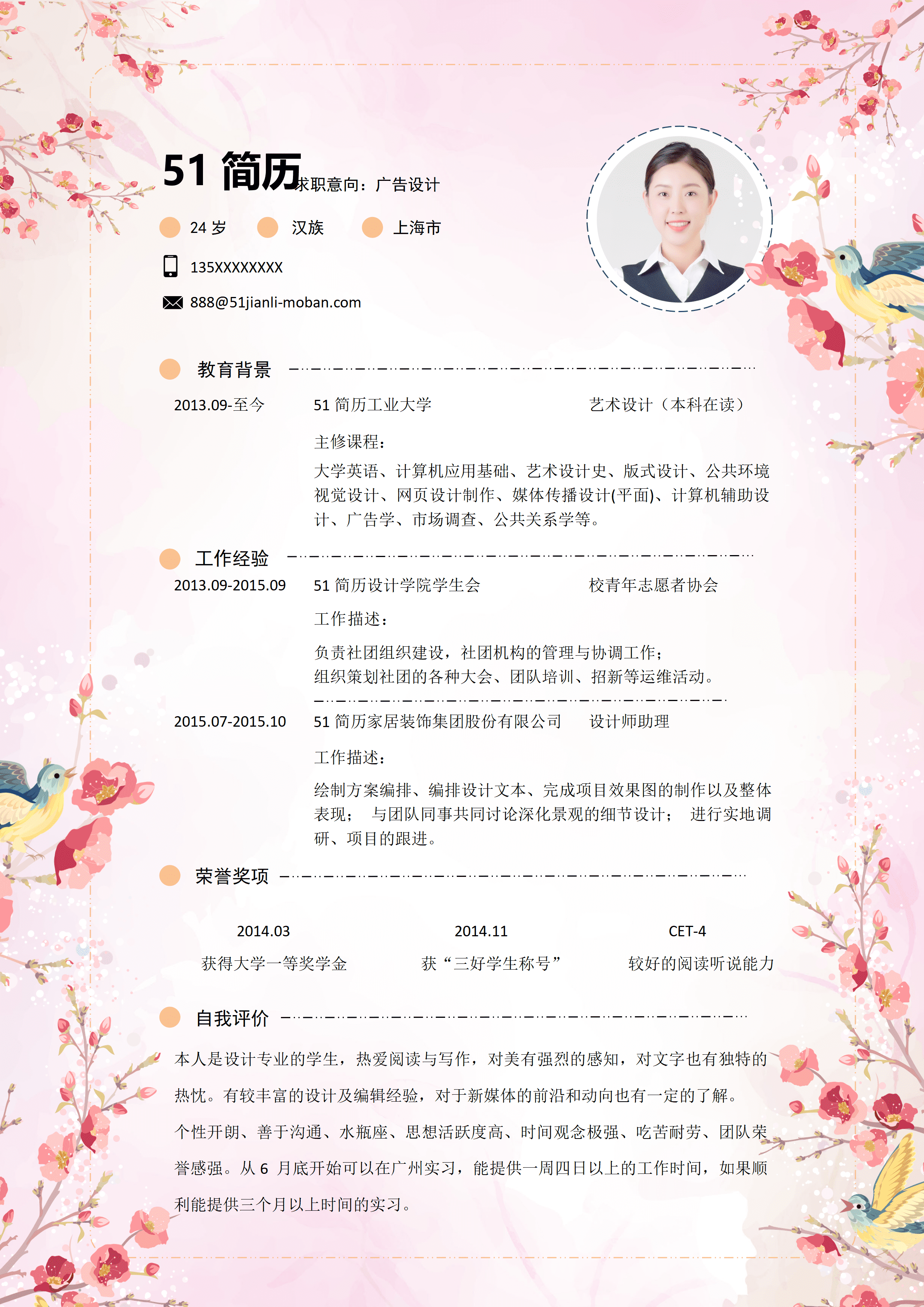 艺术设计专业简历模板