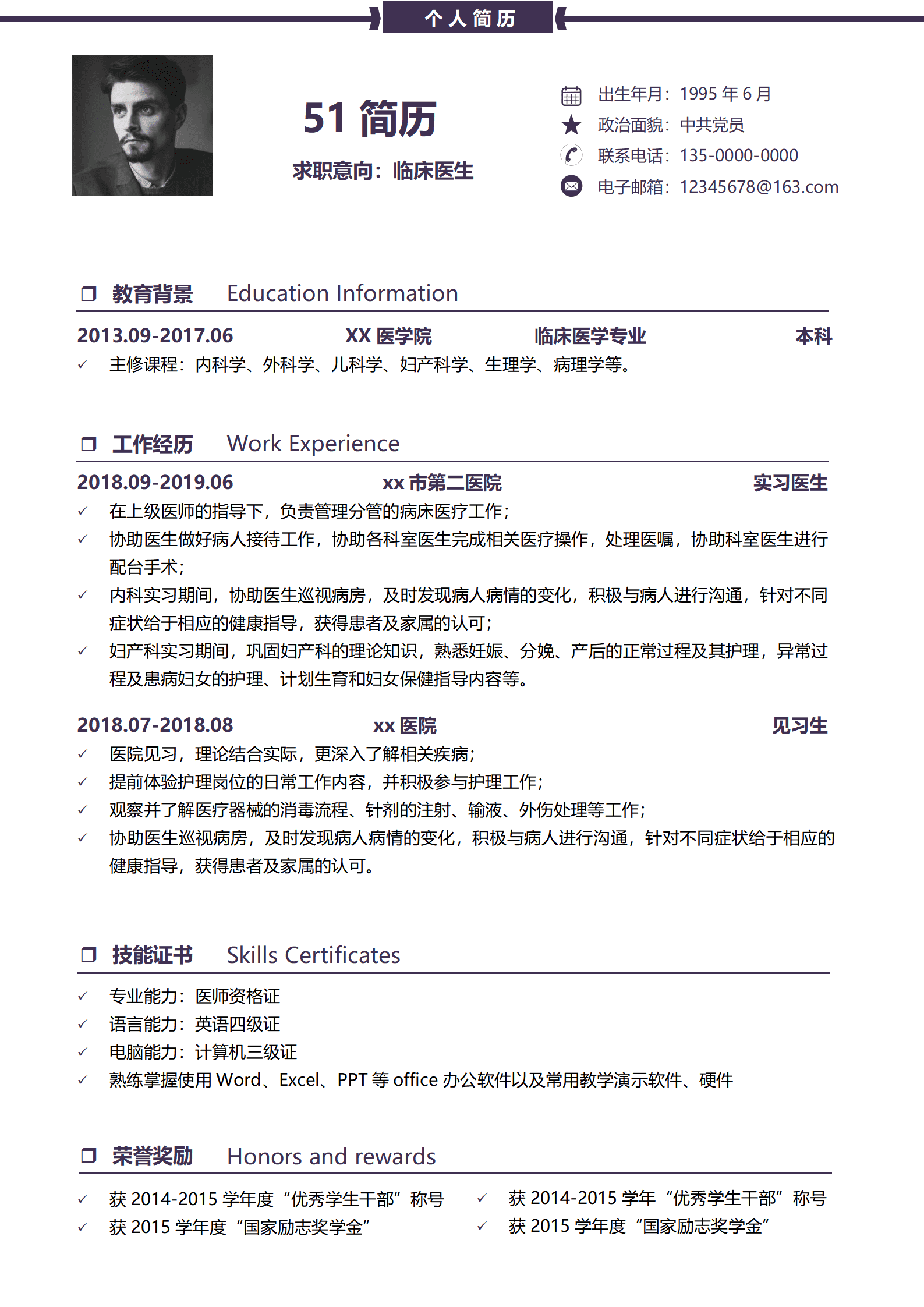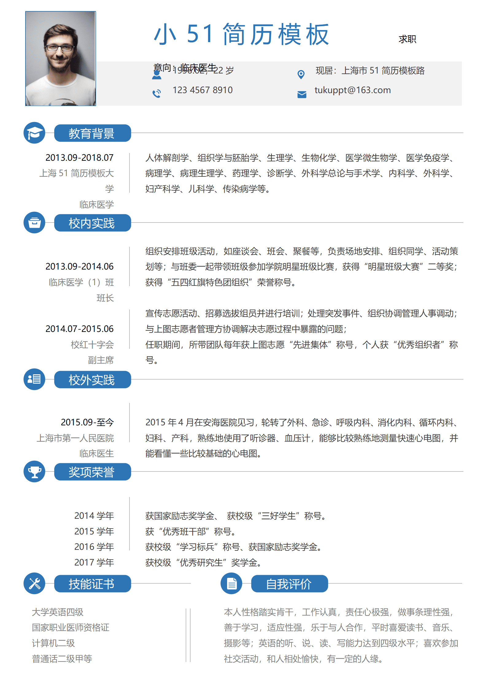 免费蓝色中国传媒大学学院简历Word模板 (2)