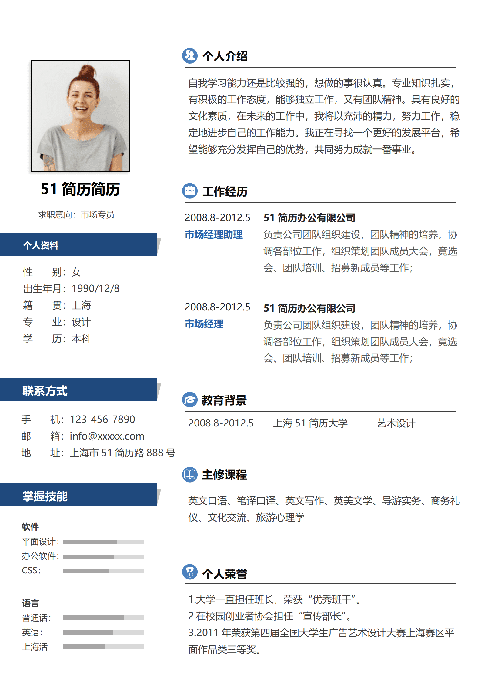 应届生简历实习生简历新媒体运营个人求职简历word简历模板