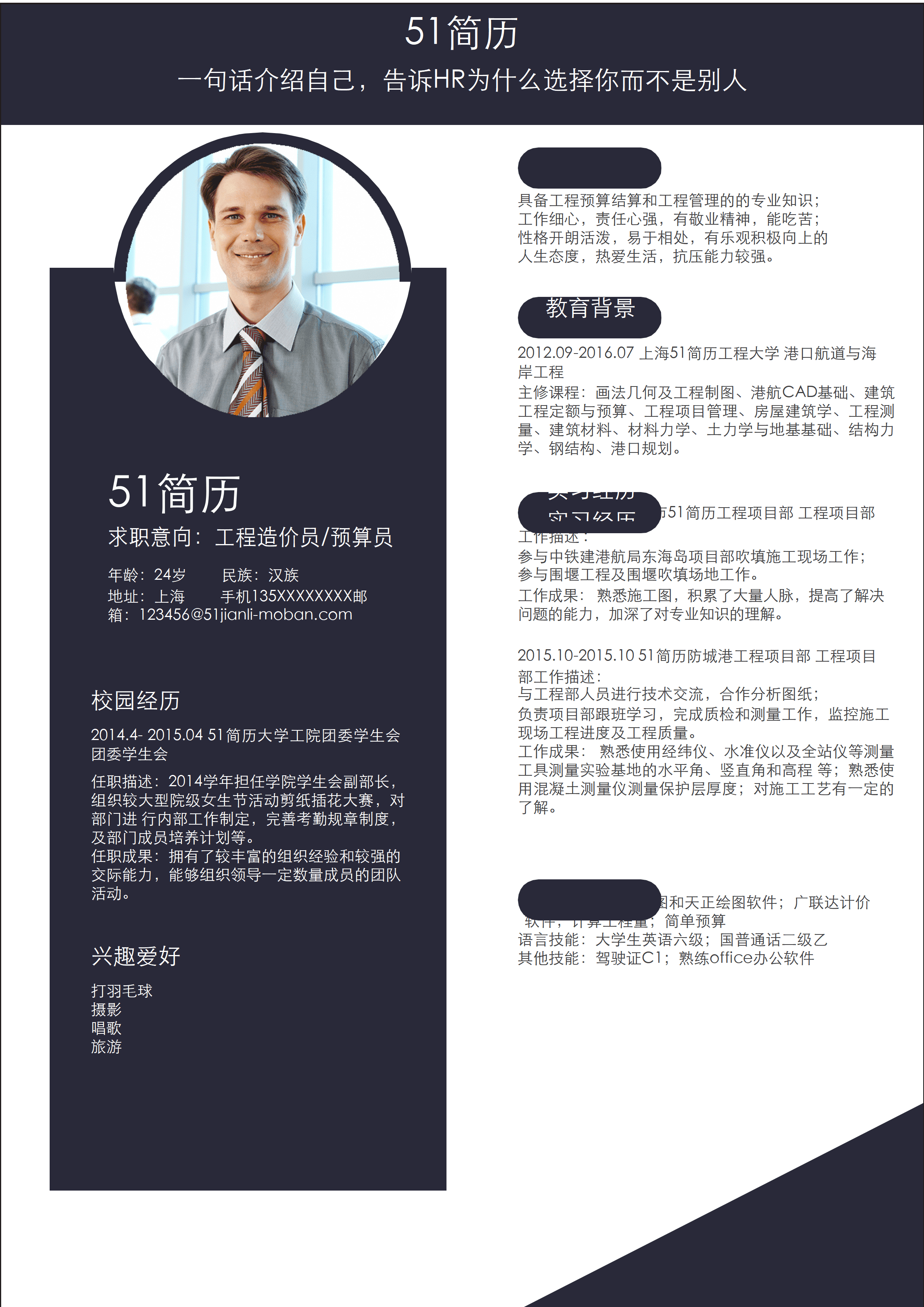 应届生职场人精美简历模板