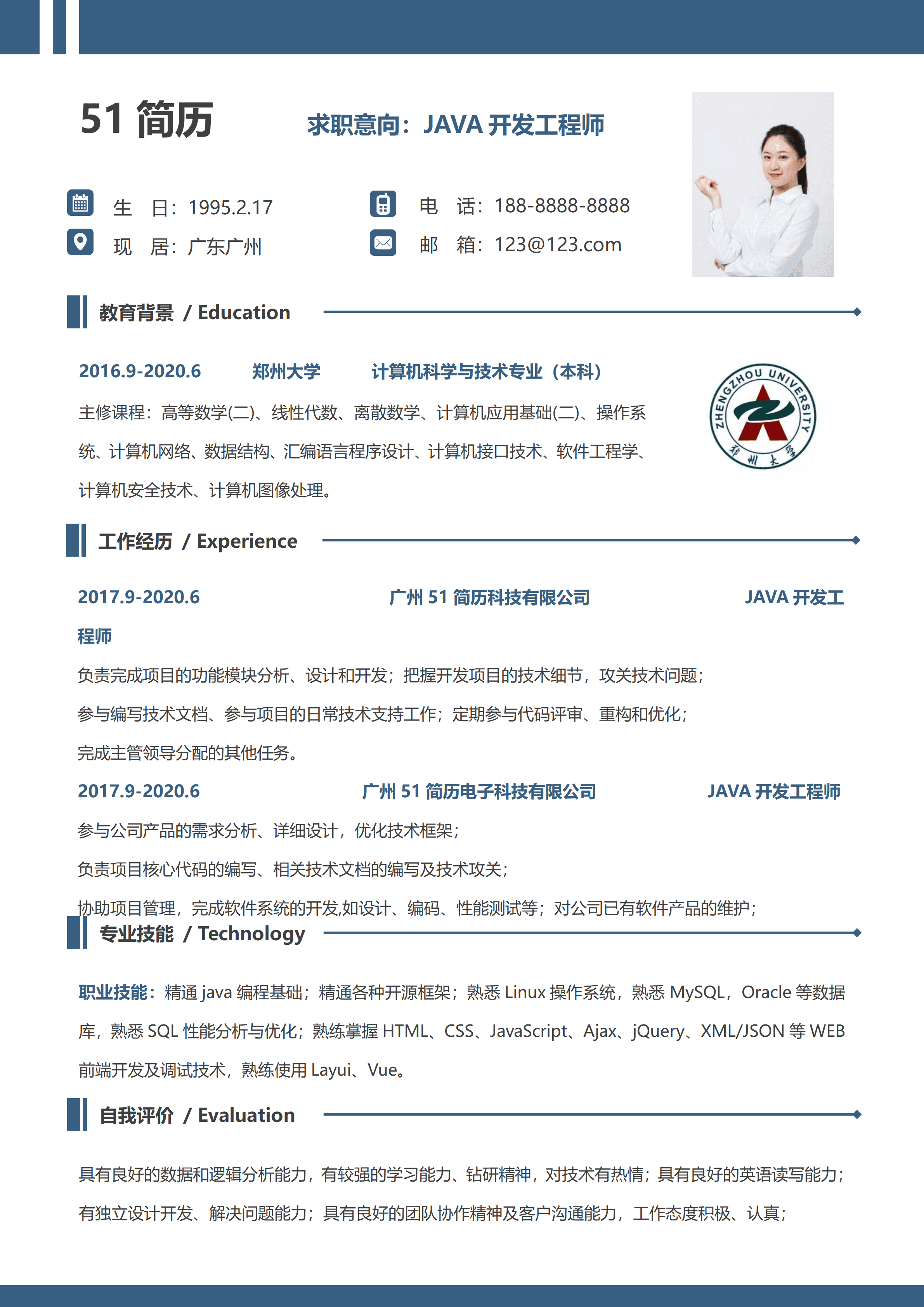 郑州大学简约简历word模板