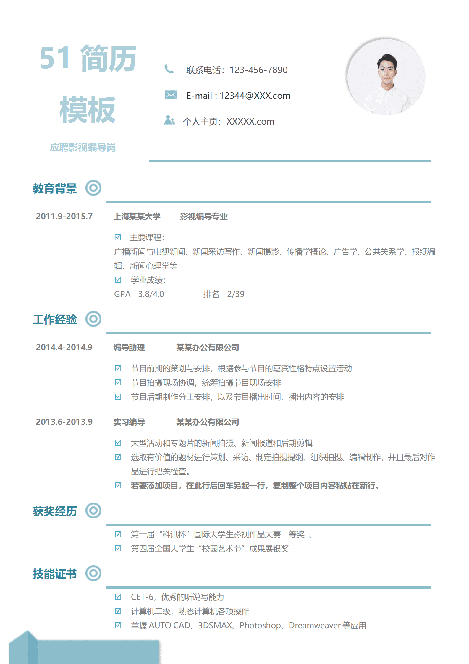 蓝色调实习生求职简历