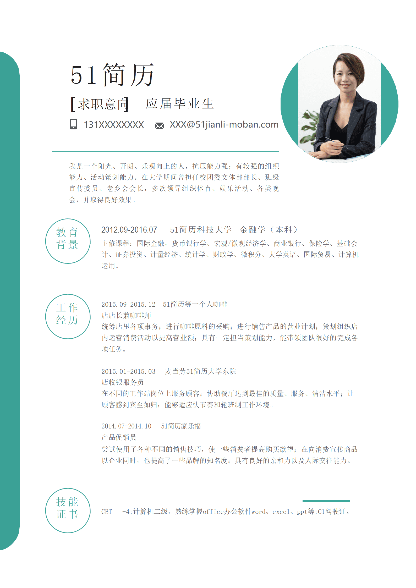 通用带头像应届生文本求职简历模板