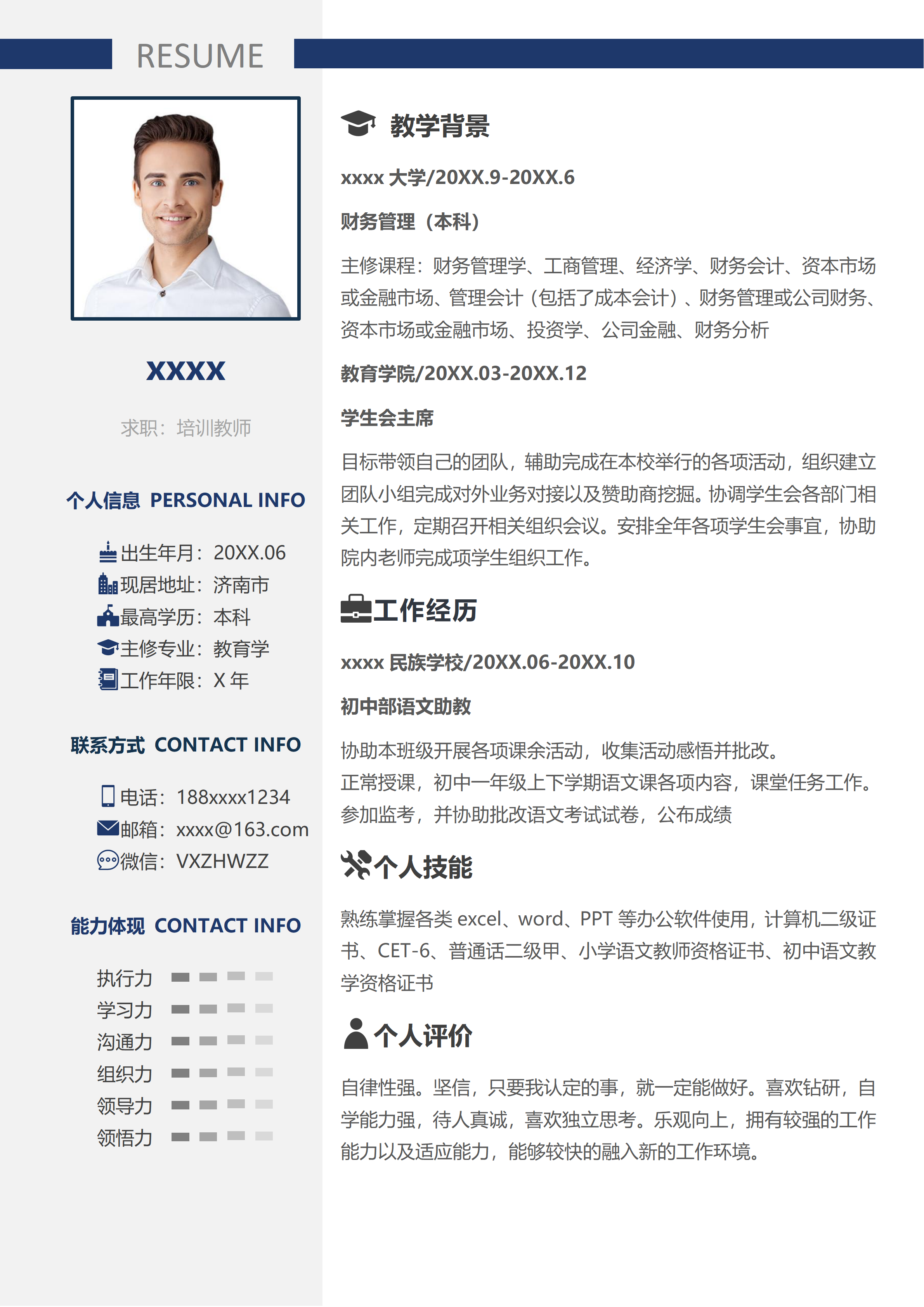 音乐培训老师简历模板