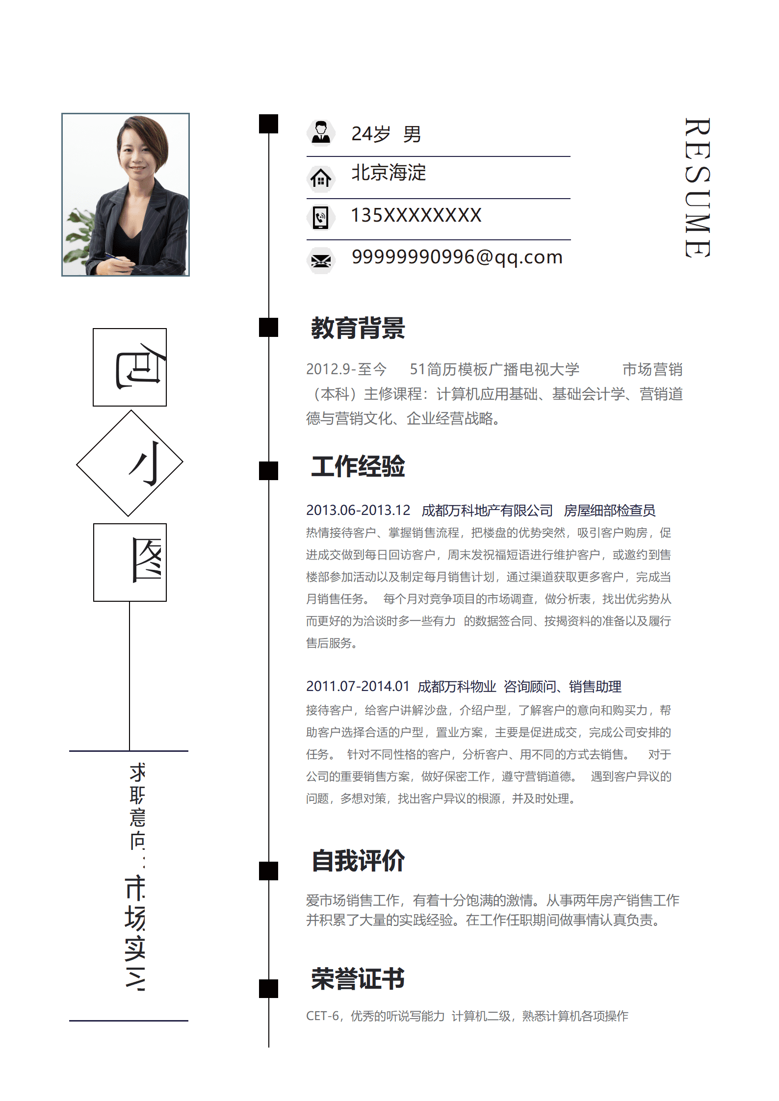 市场部简历模板素材