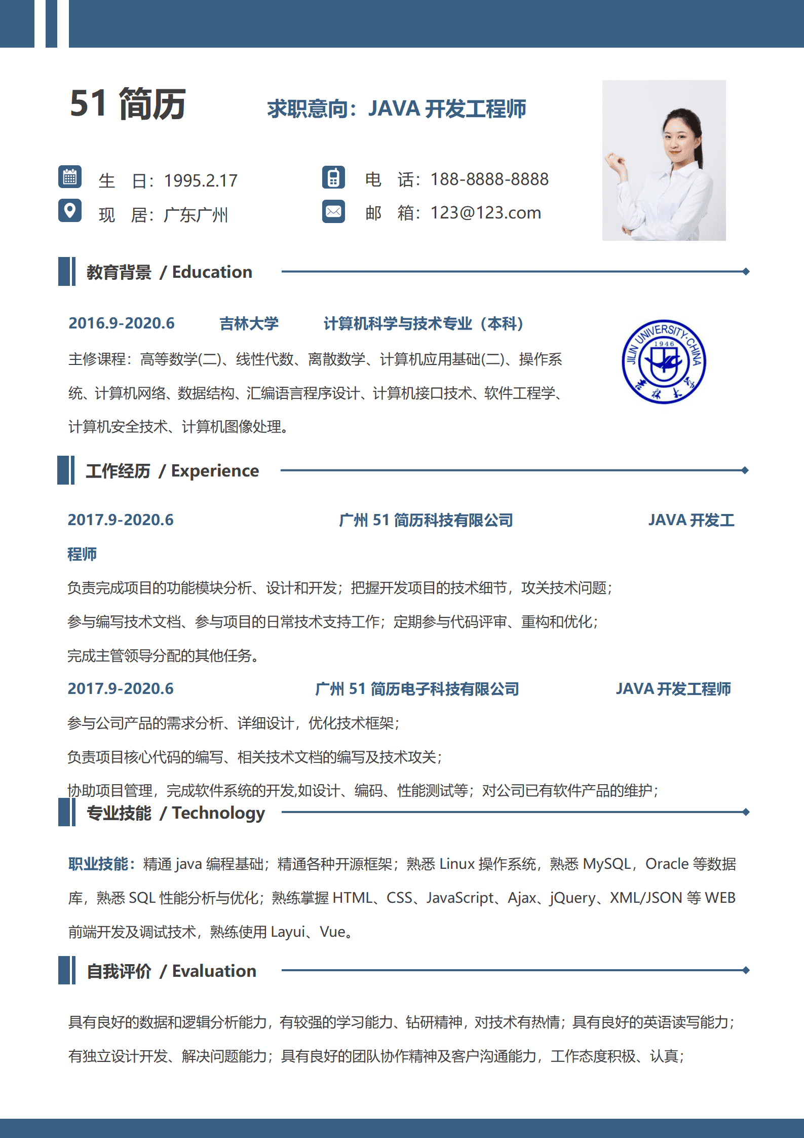 信息技术软件开发相关岗位求职简历模板