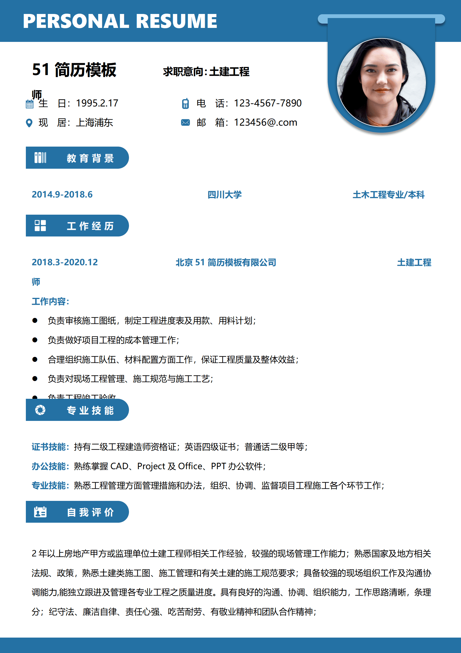 土木工程专业毕业生简历模板