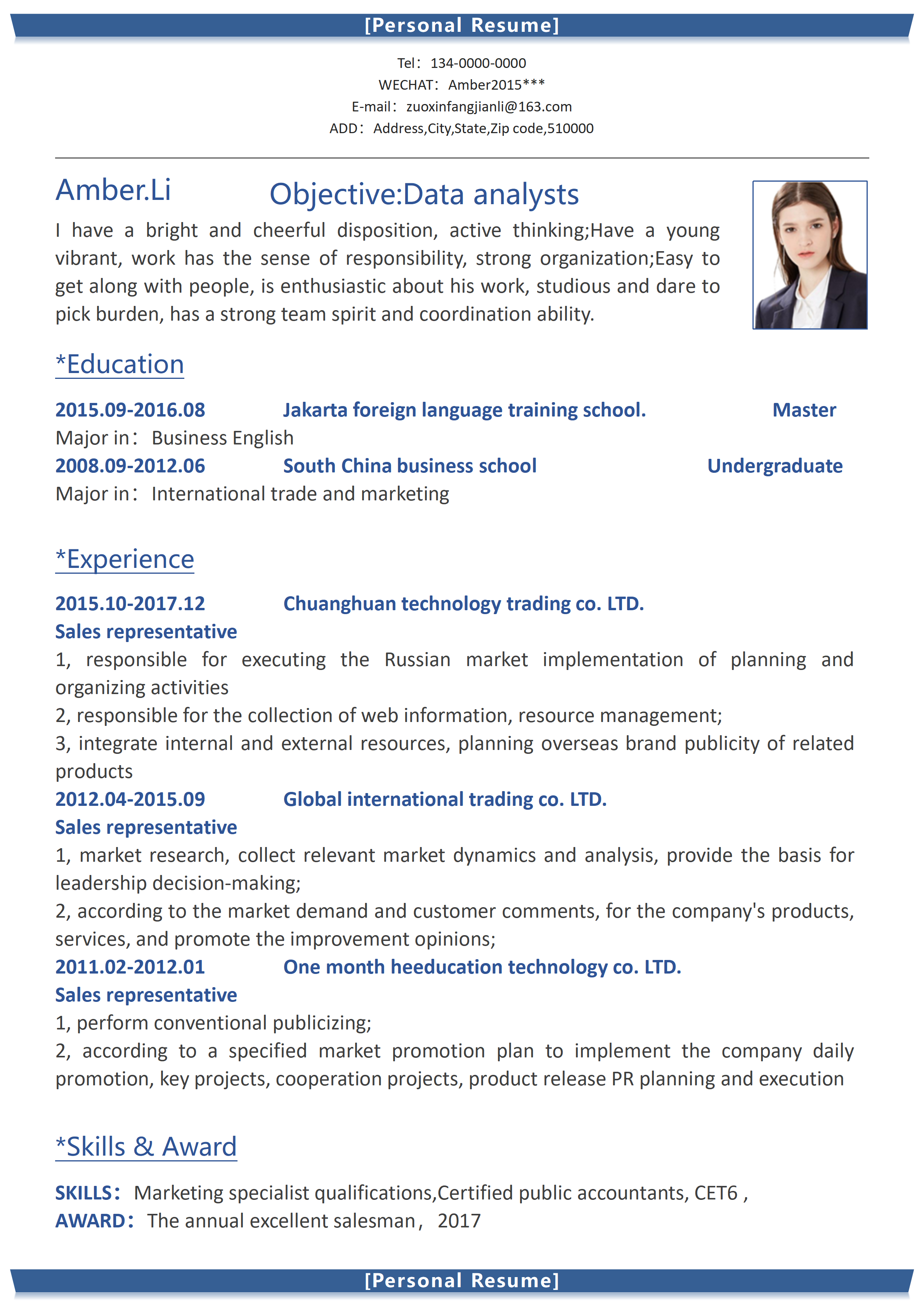 国际经济与贸易专业简历模板