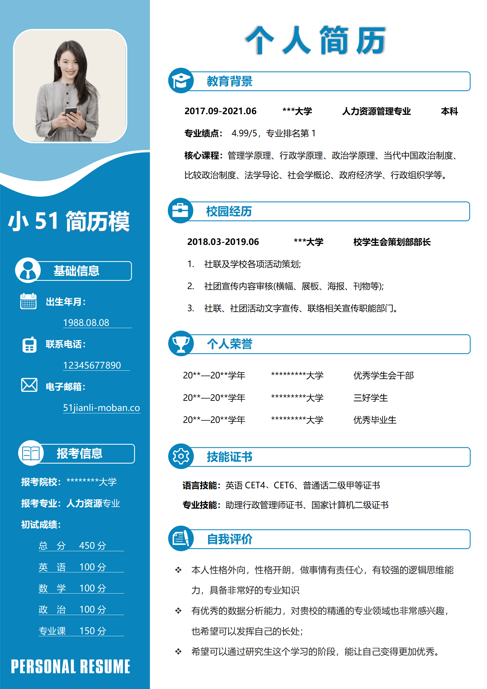 求职人力资源管理职位的应届毕业生简历模板